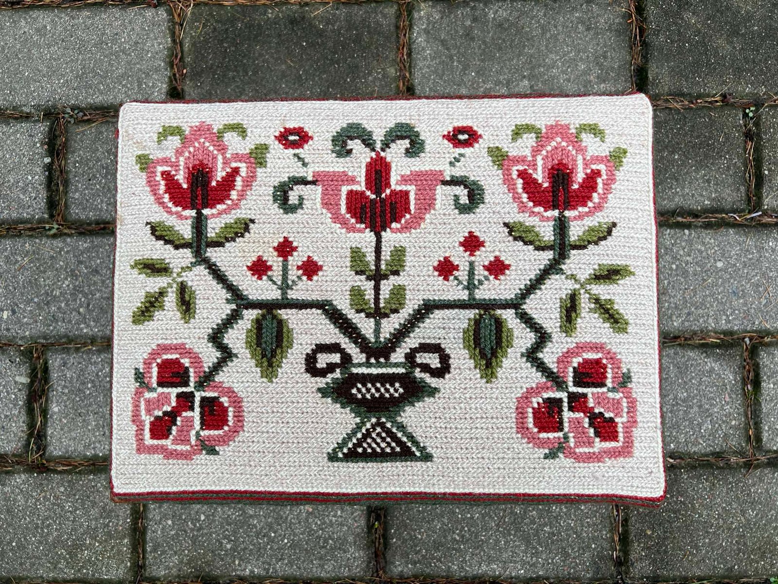 Pakojis antikvarinis, siuvinėtas. Aukštis 16, plotis 27, ilgis 35 cm. Kaina 53
