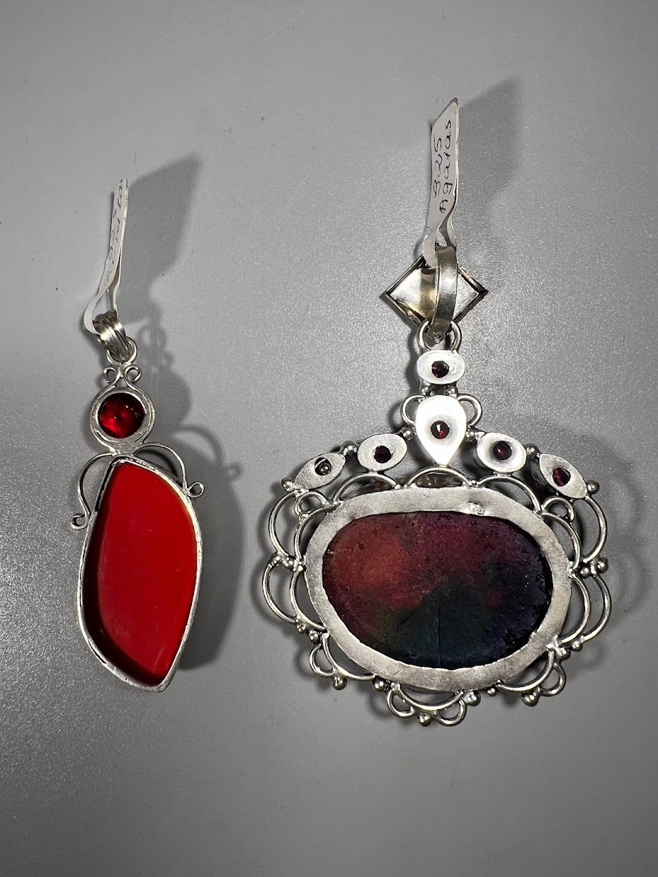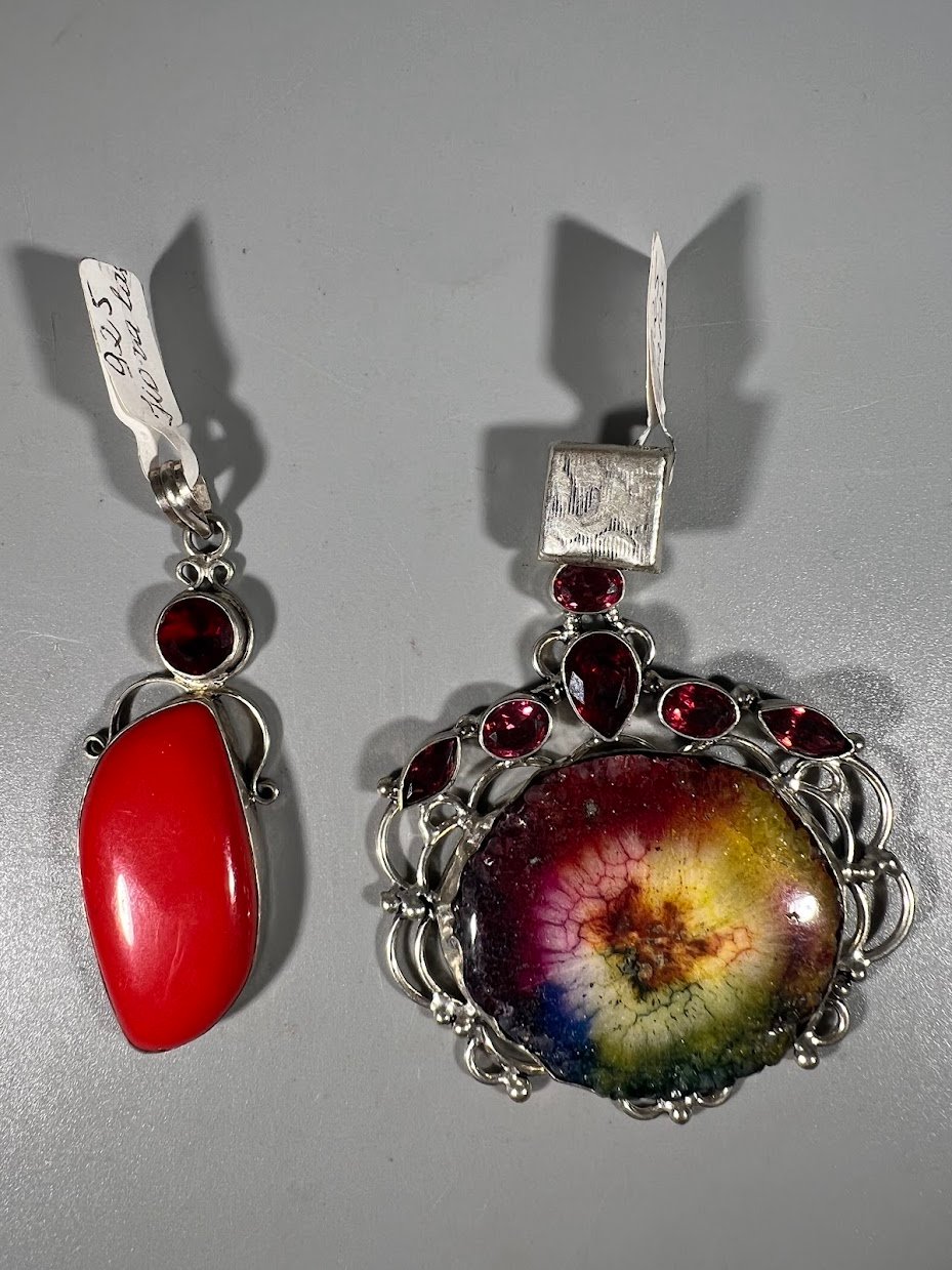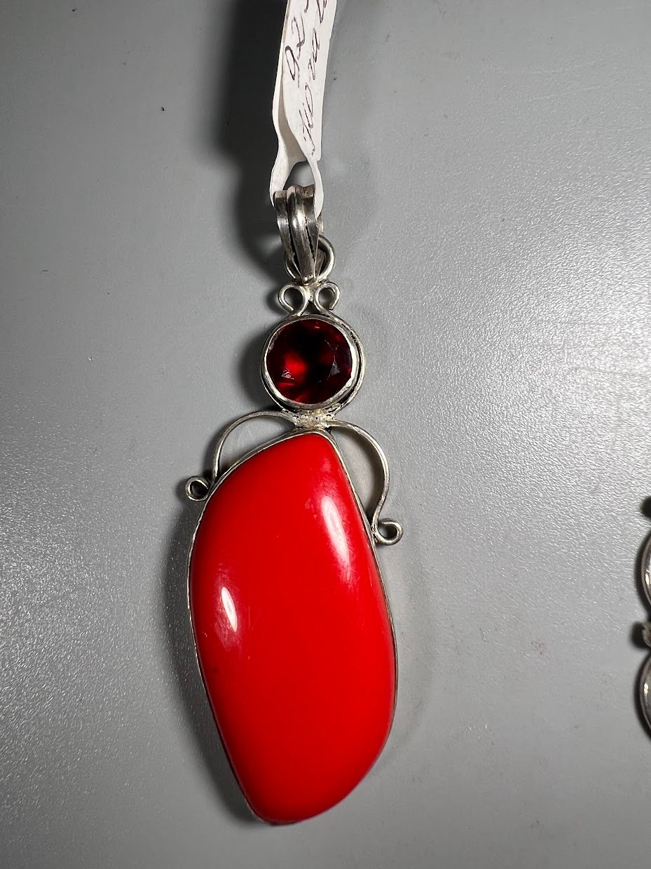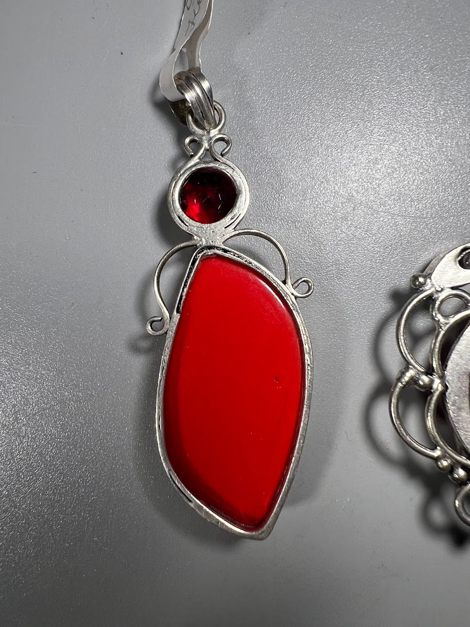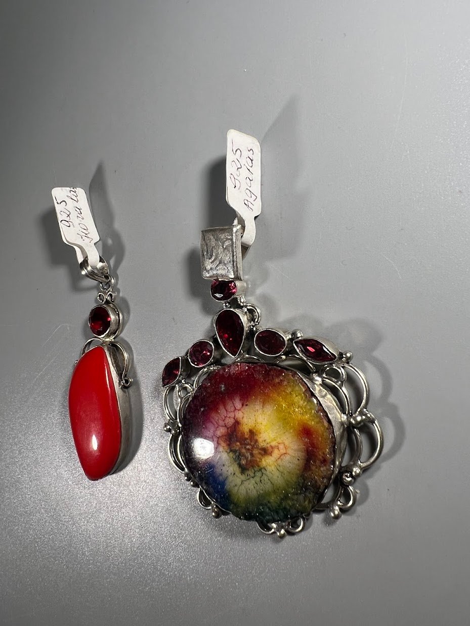 Papuošalai 925 su sintetiniais akmenimis. Koralas ir Agatas. 2 vnt. Kaina 33 ir 58