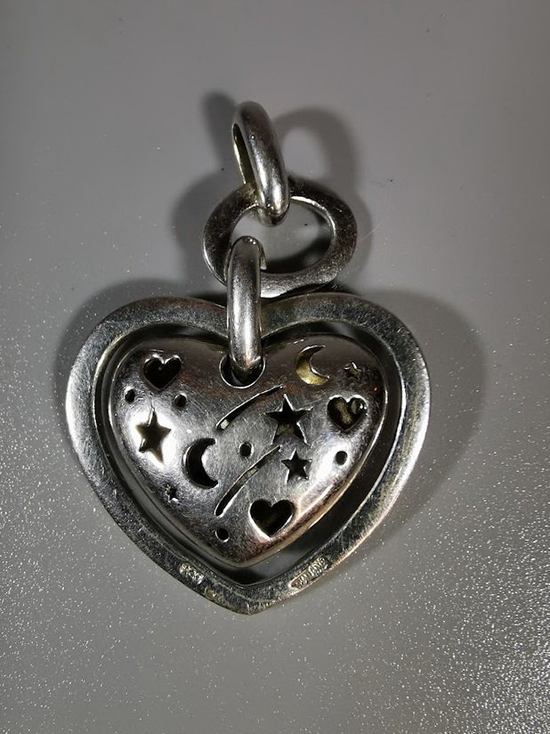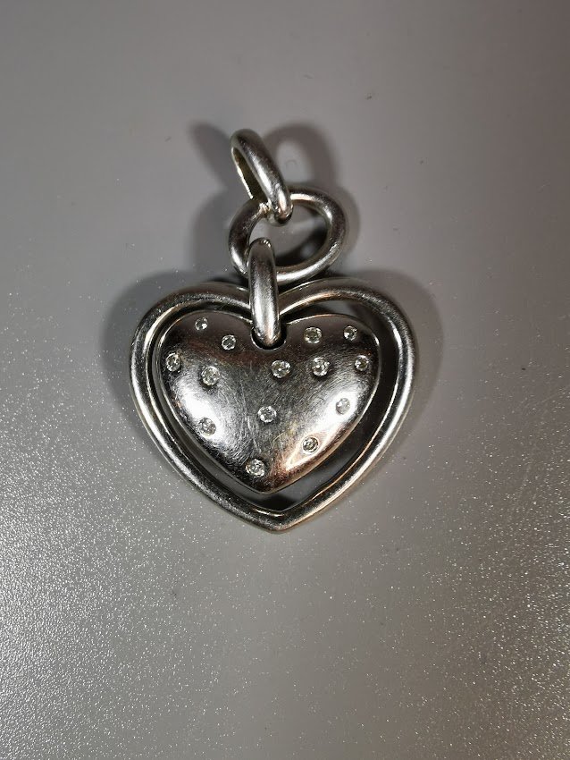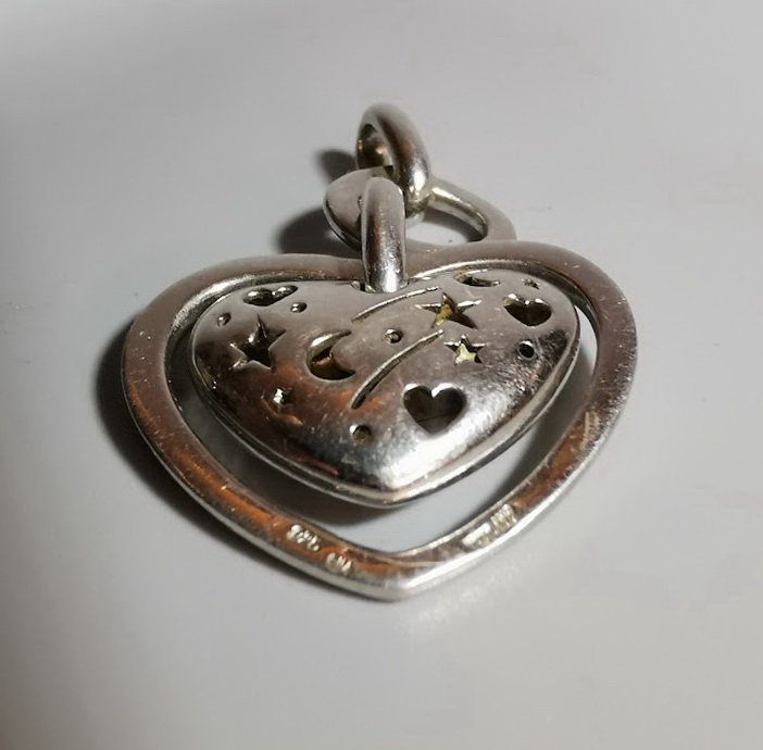 Papuošalas, pakabukas sidabrinė širdelė. Praba 925. Svoris 13 g. Kaina 38