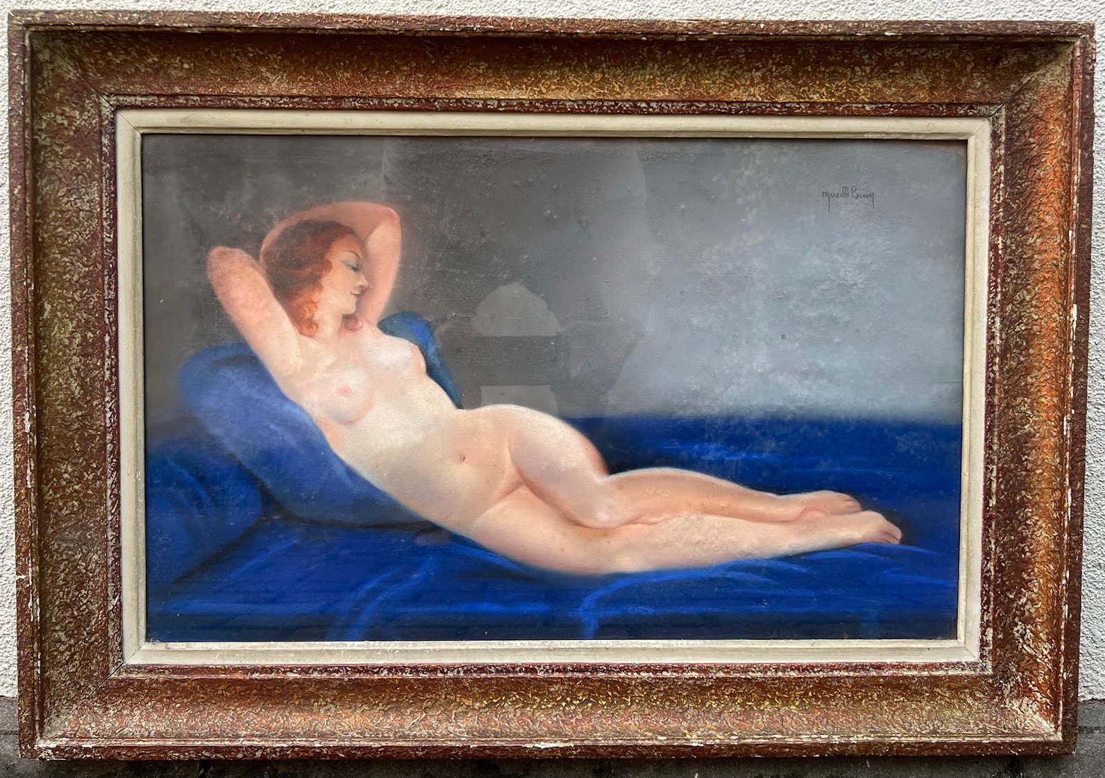 Paveikslas antikvarinis Nuoga moteris, aktas. Popierius, pastelė, Mireille Brun. Dydis: 39 x 61 cm. Išorinis rėmo dydis: 52 x 74 cm. Kaina 278