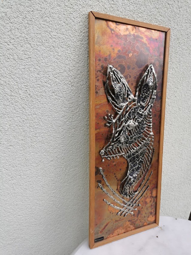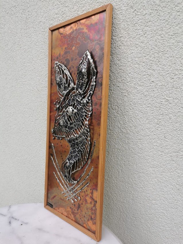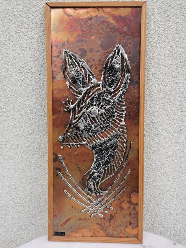Paveikslas, bareljefas metalinis su dizainerio pavarde. Kaina 38