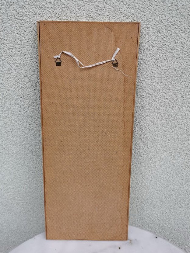 Paveikslas, bareljefas metalinis su dizainerio pavarde. Dydis 21 x 51 cm. Kaina 38
