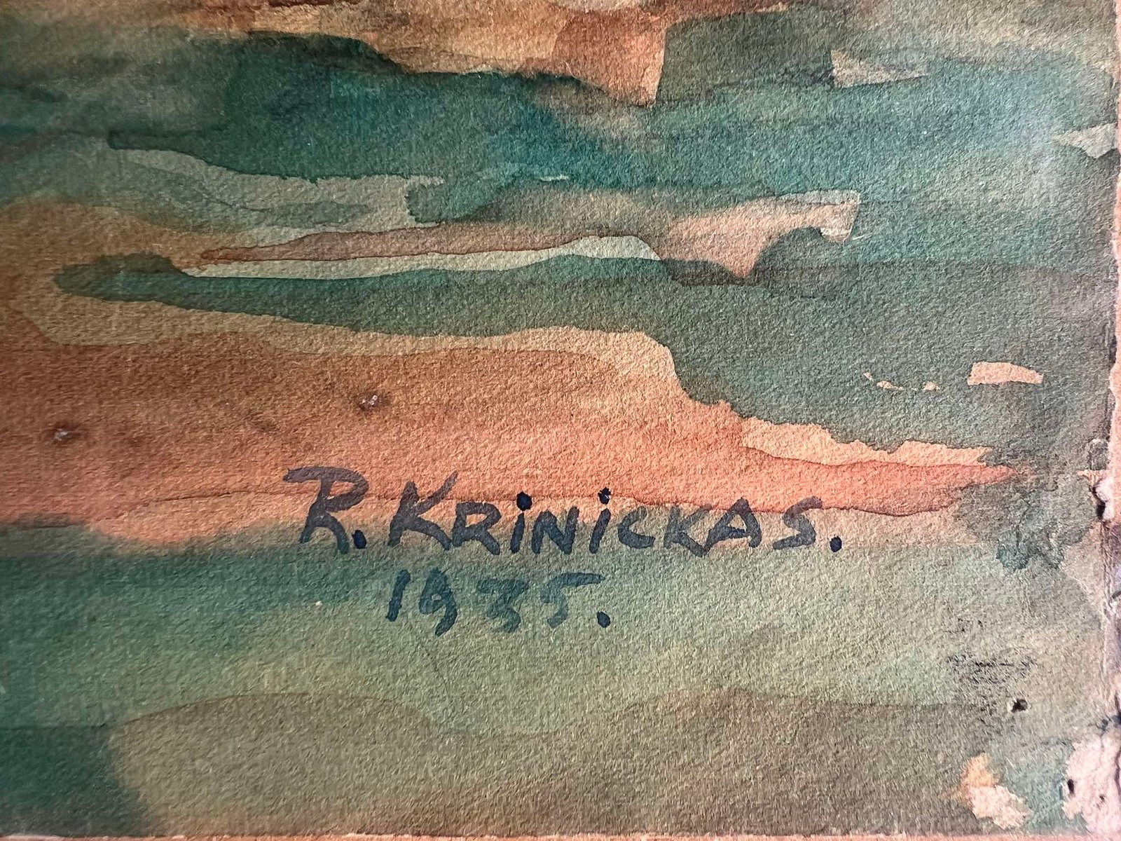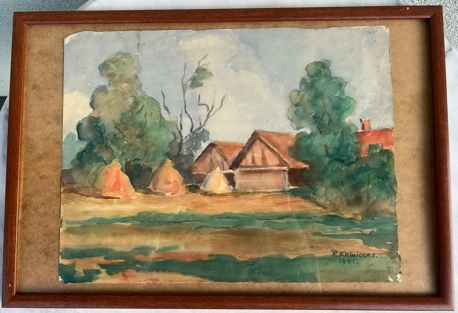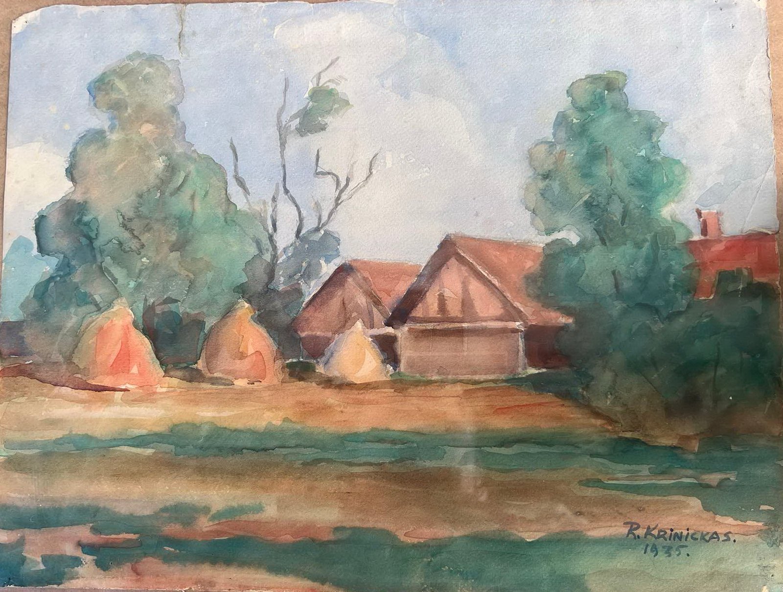 Paveikslas Kaimas. Ramazanas Krinickas. 1935 m. Popierius, akvarelė. Piešinio dydis: 36 x 27,5 cm. Kaina 258