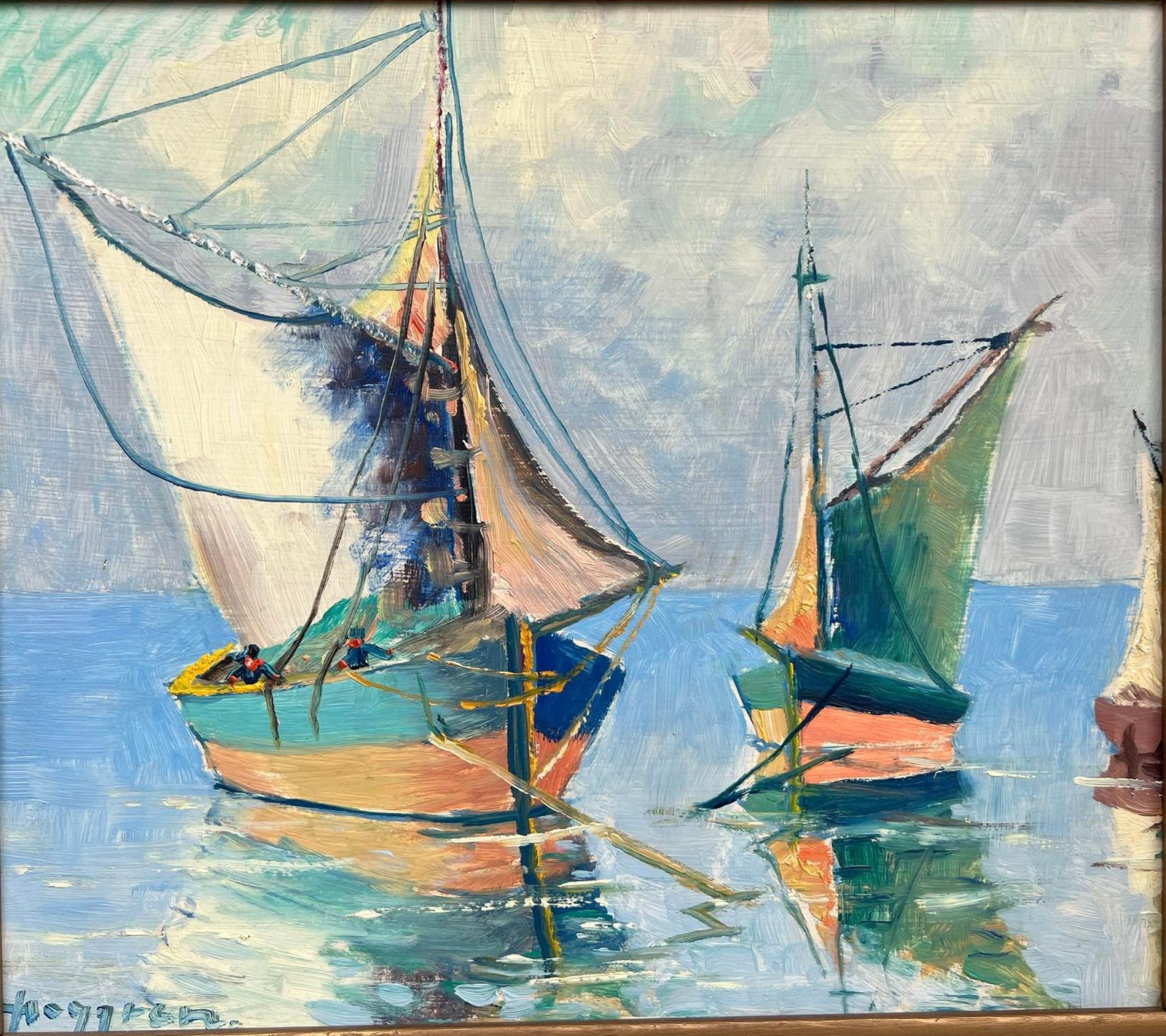Paveikslas Laivai, marinistinis. Kartonas, aliejus. Kaina 78