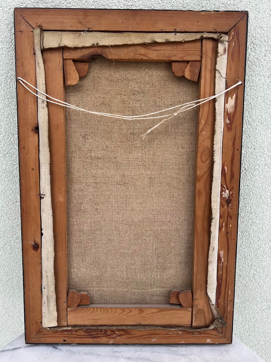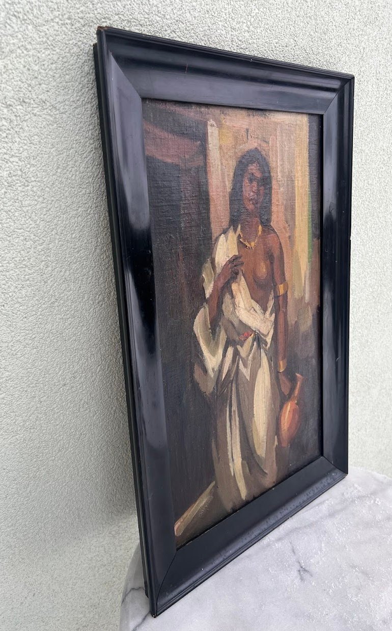 Paveikslas Moteris su ąsočiu. Drobė, aliejus. Orientalistinis stilius, antikvarinis. Išorinis medinio rėmo dydis: 43 x 64 cm. Kaina 73