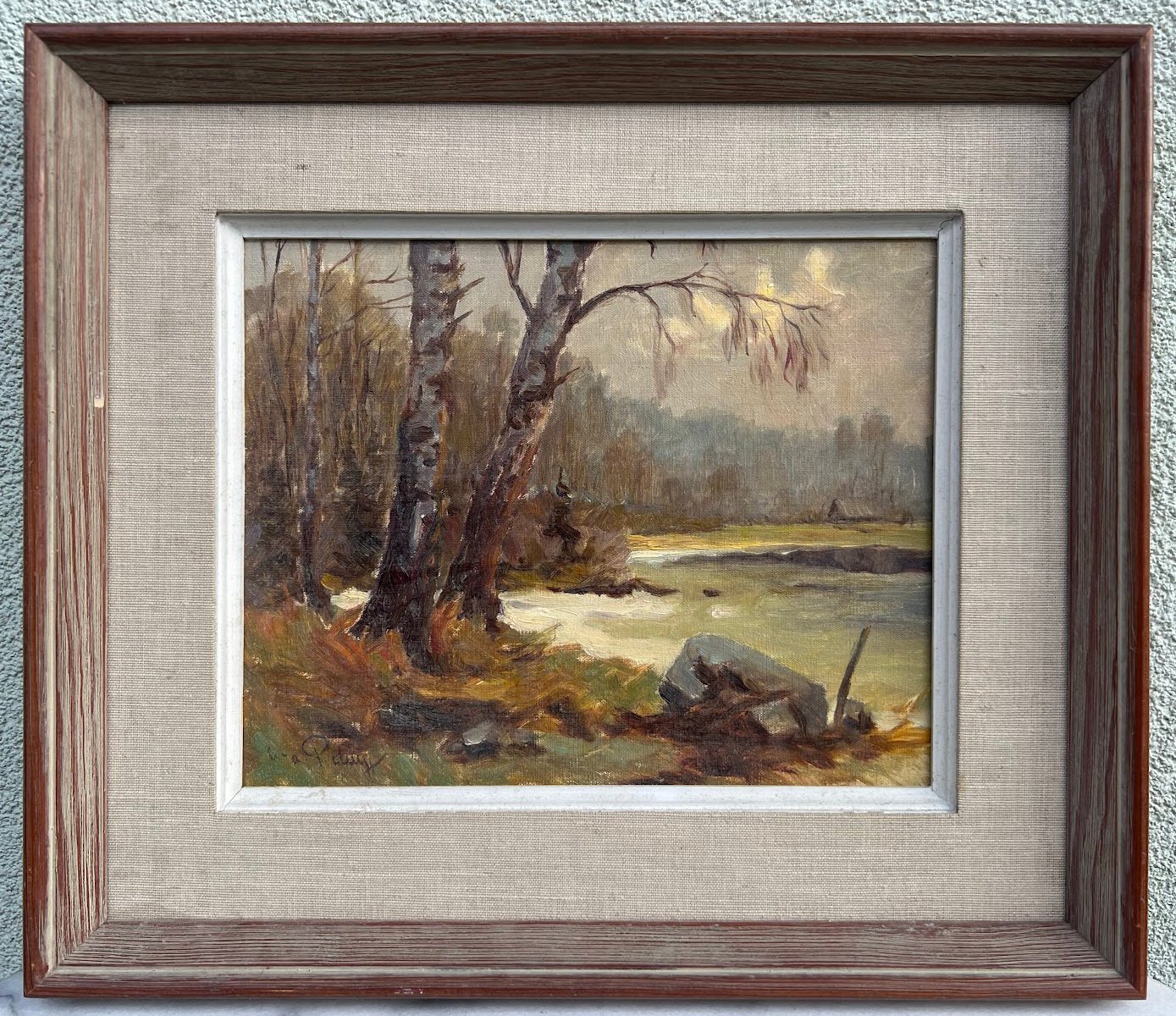 Paveikslas Peizažas saulėtekis. Drobė, aliejus. Išorinis medinio rėmo dydis: 34 x 39 cm. Drobės dydis: 22 x 27 cm. Kaina 68