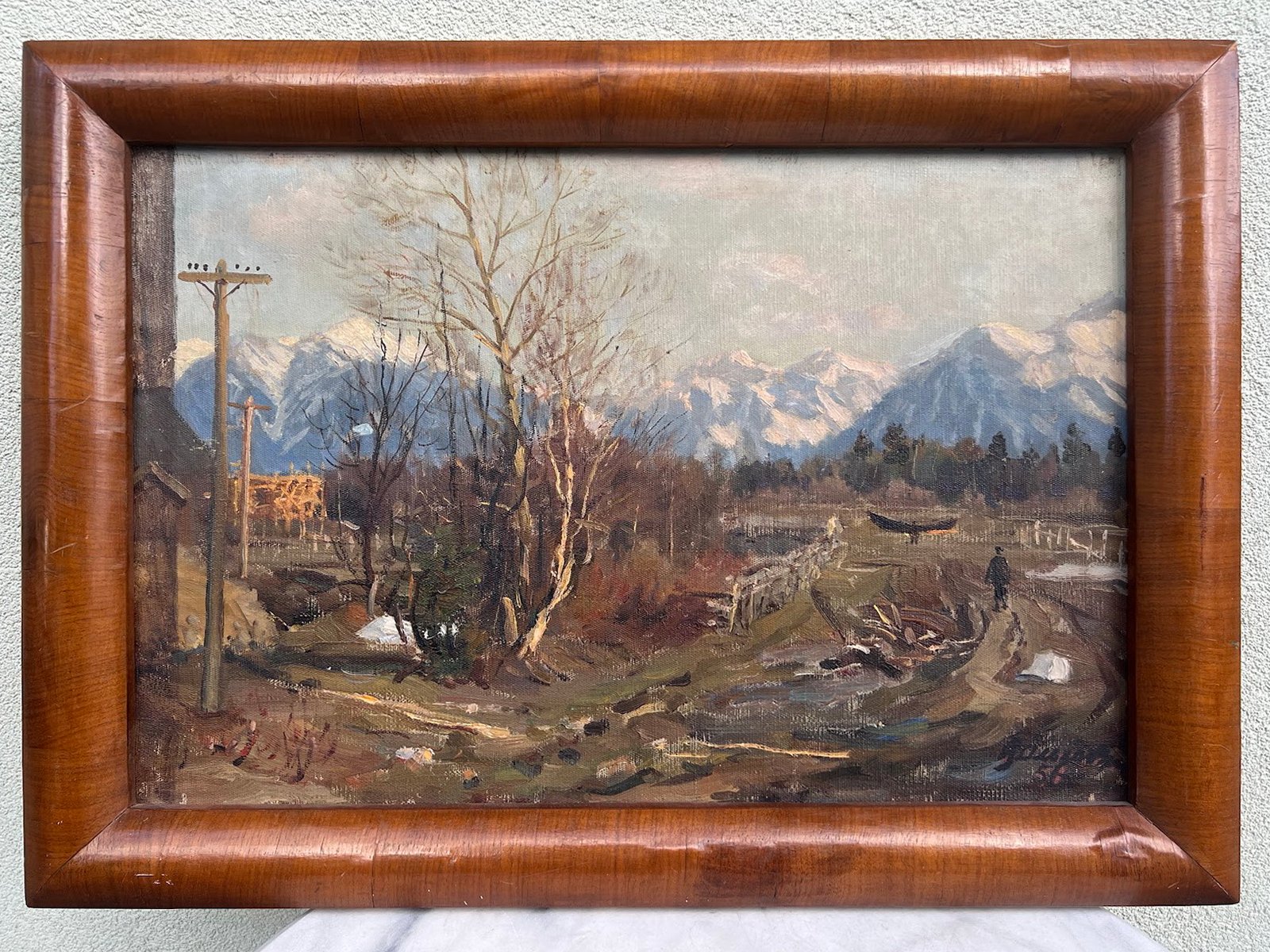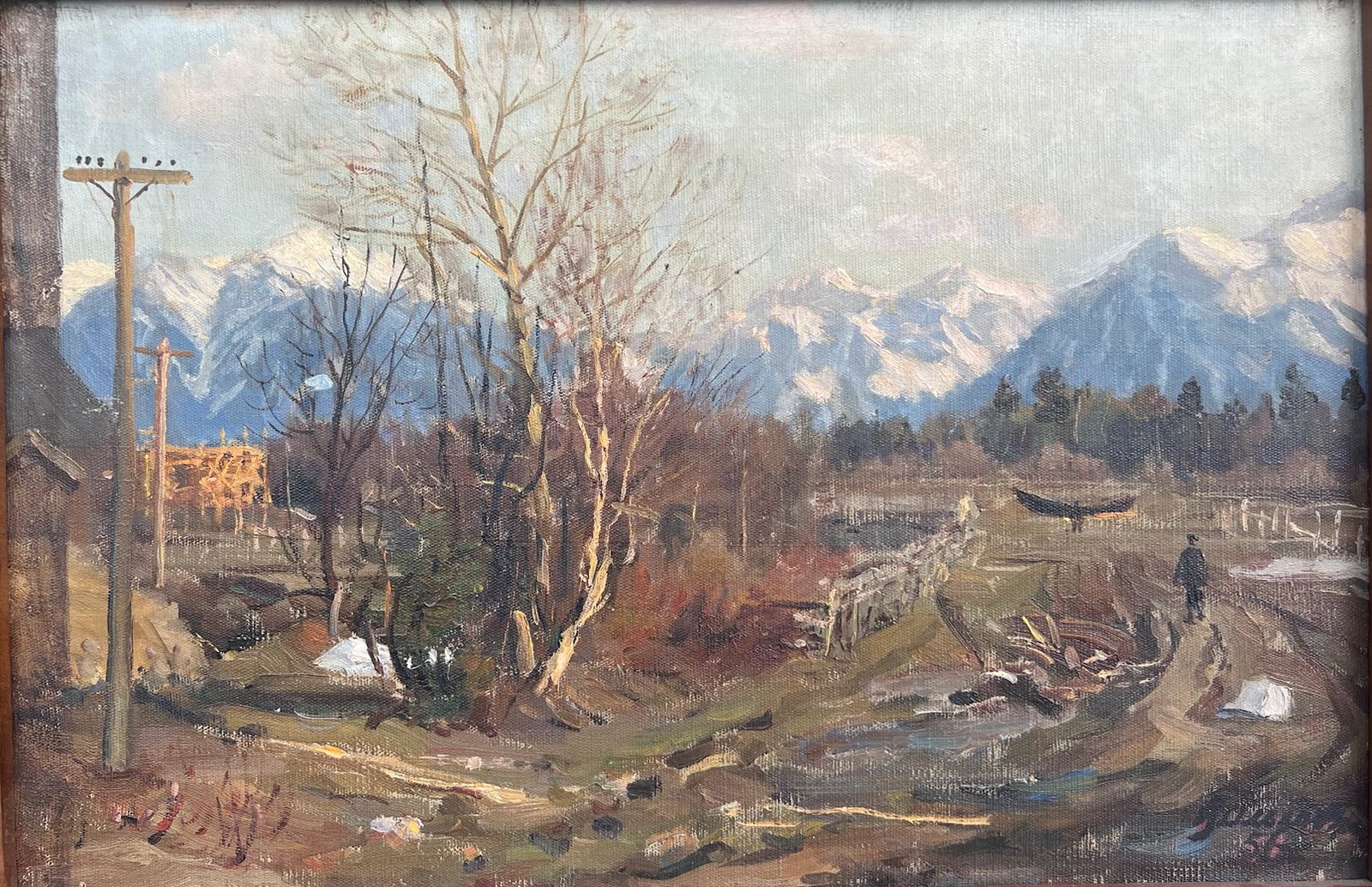 Paveikslas Sibiras, 1956 m. Drobė, aliejus. Ольховик Василий Федорович, Vasilijus Olchovikas (1916–1996). Dydis 42 x 63 cm. Rėmo plotis 5 cm. Kaina 368