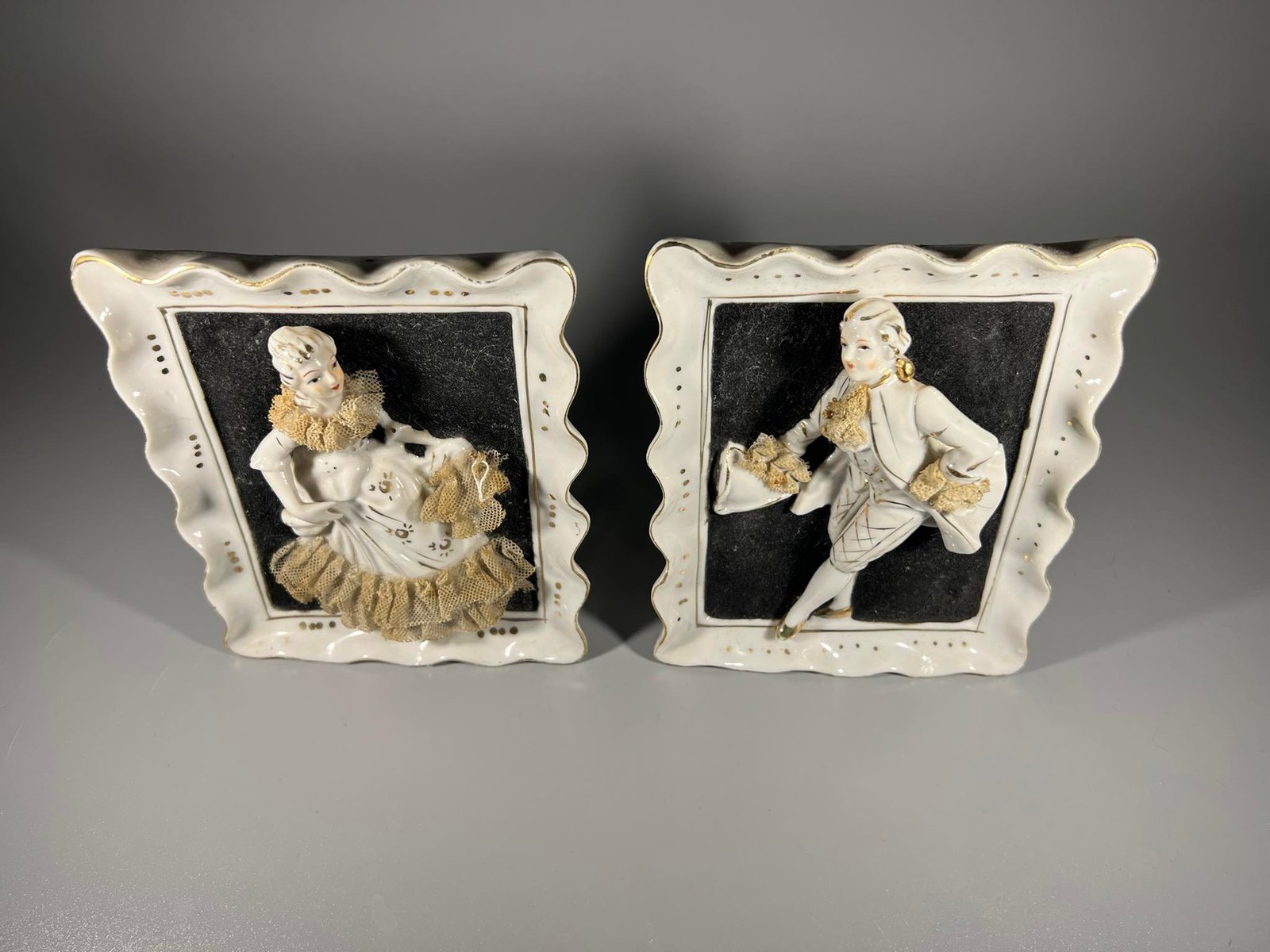 Paveikslėliai porcelianiniai, reljefiniai, antikvariniai Rokoko stiliaus. 2 vnt. Kaina 43