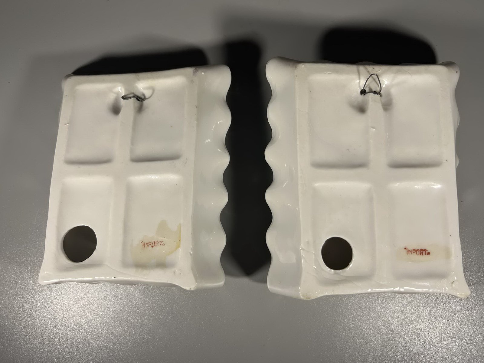 Paveikslėliai porcelianiniai, reljefiniai, antikvariniai Rokoko stiliaus. 2 vnt. Pakabinami, pastatomi. Dydis: 3 x 11 x 14 cm. Kaina 43