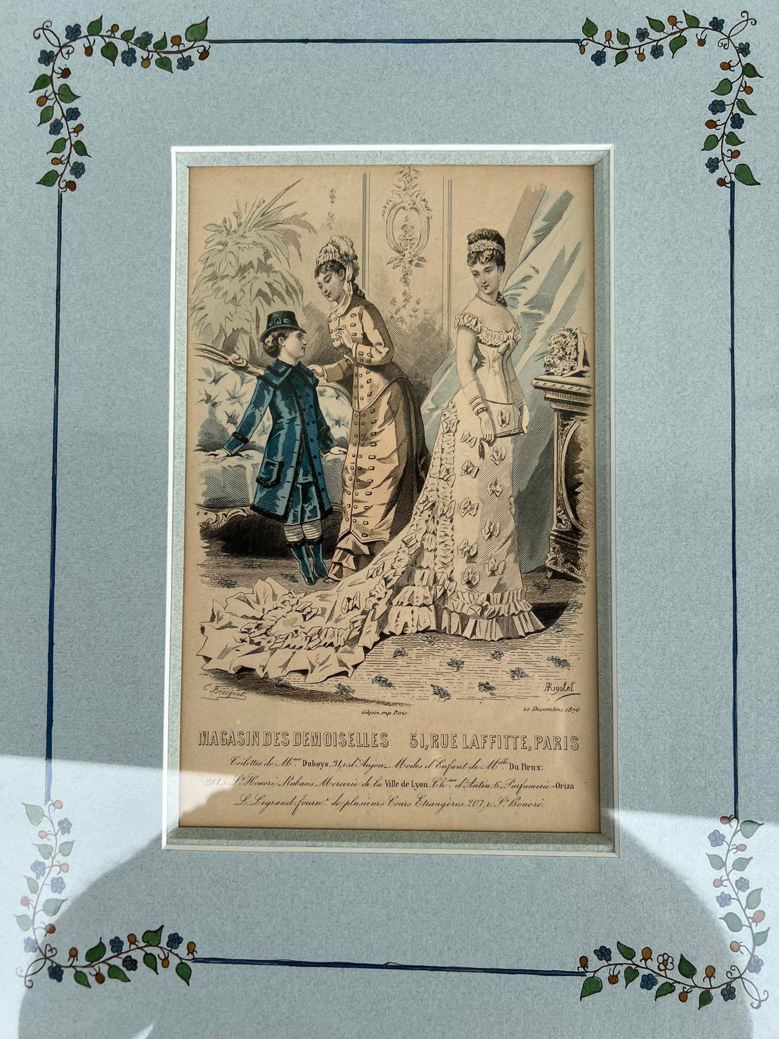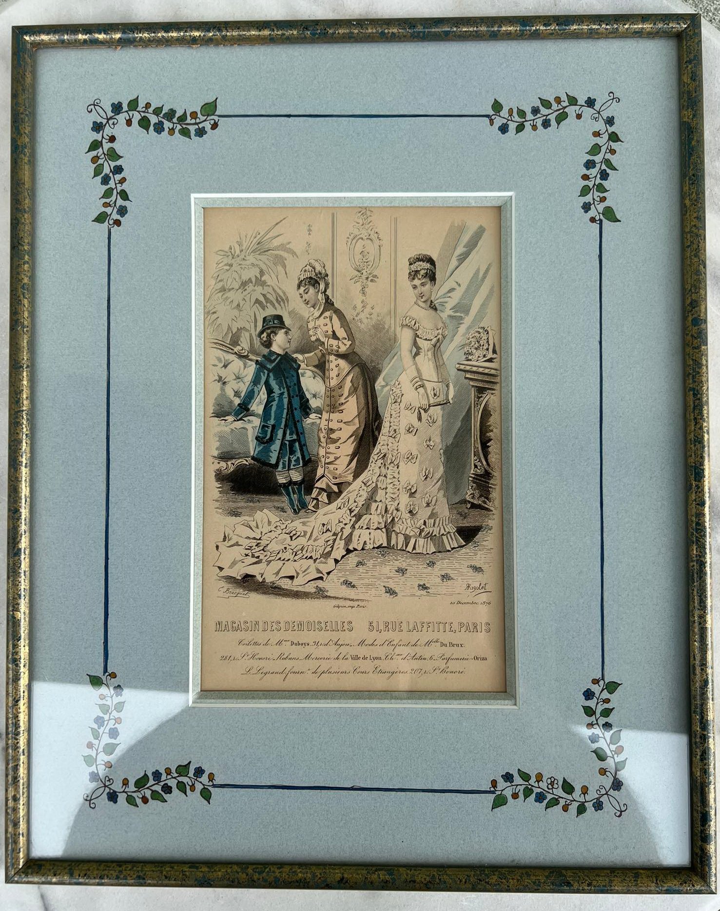 Paveikslėlis antikvarinis Mada. Medinis rėmelis, stiklas. Prancūzija. 1876 m. Kaina 43