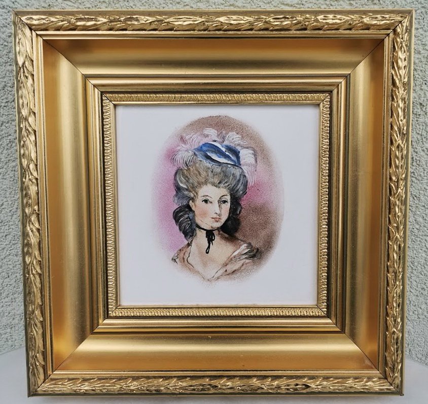 Paveikslėlis Dama keraminis, autorinis, mediniuose rėmuose. Rėmo išorinis dydis: 25 x 25 cm. Kaina 43