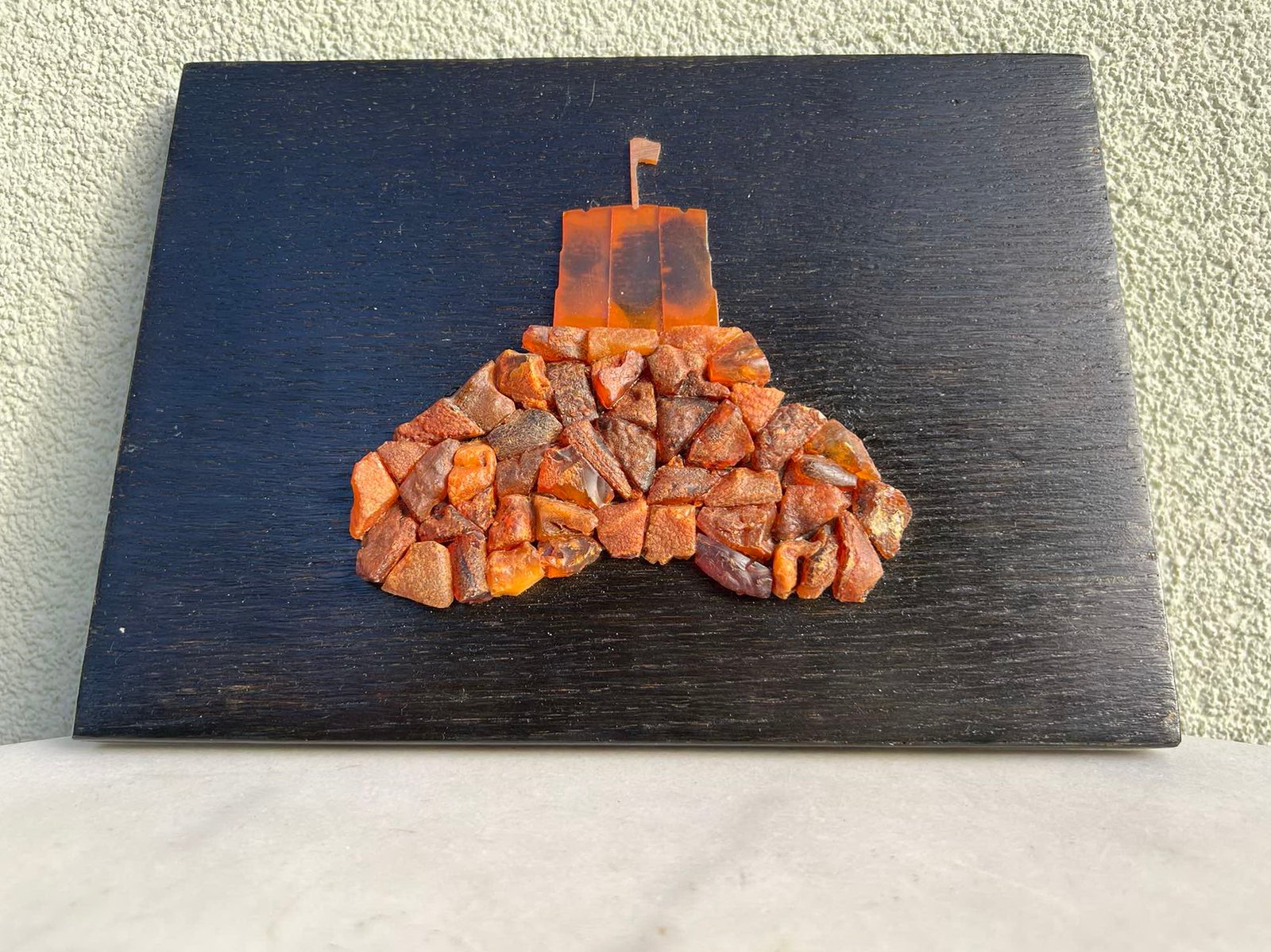 Paveikslėlis medinis su gintaru, gintaro mozaika sovietinis, tarybinių laikų. Gedimino pilis. Kaunas, Jiesia. 1984 m. Kaina 43