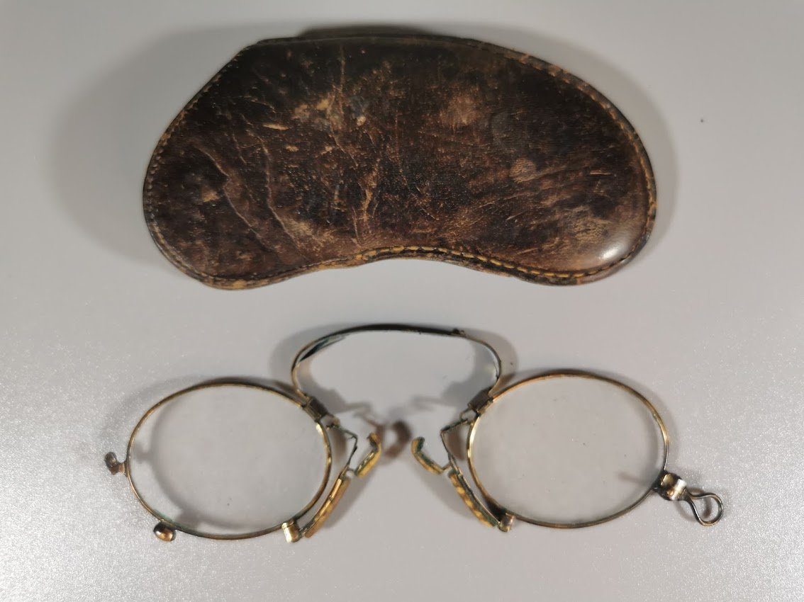 Pensne akiniai odiniame dėkle antikvariniai. Kaina 63