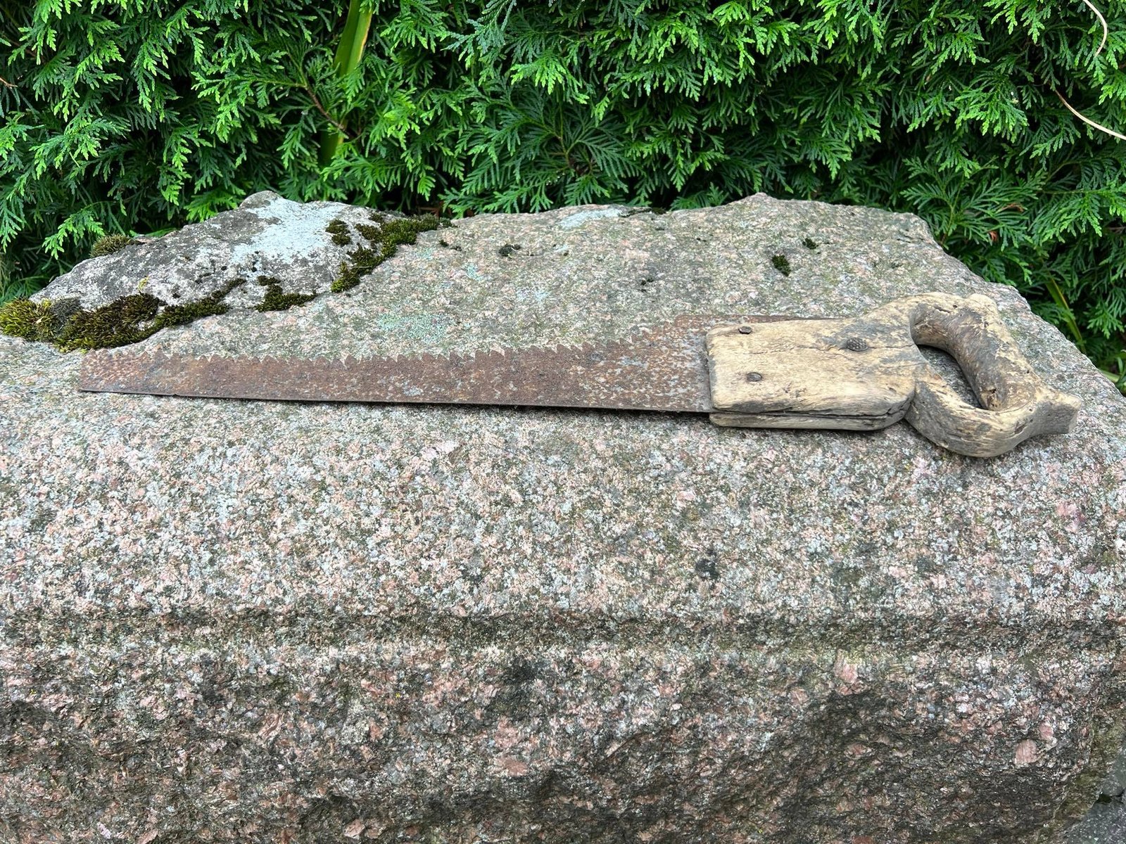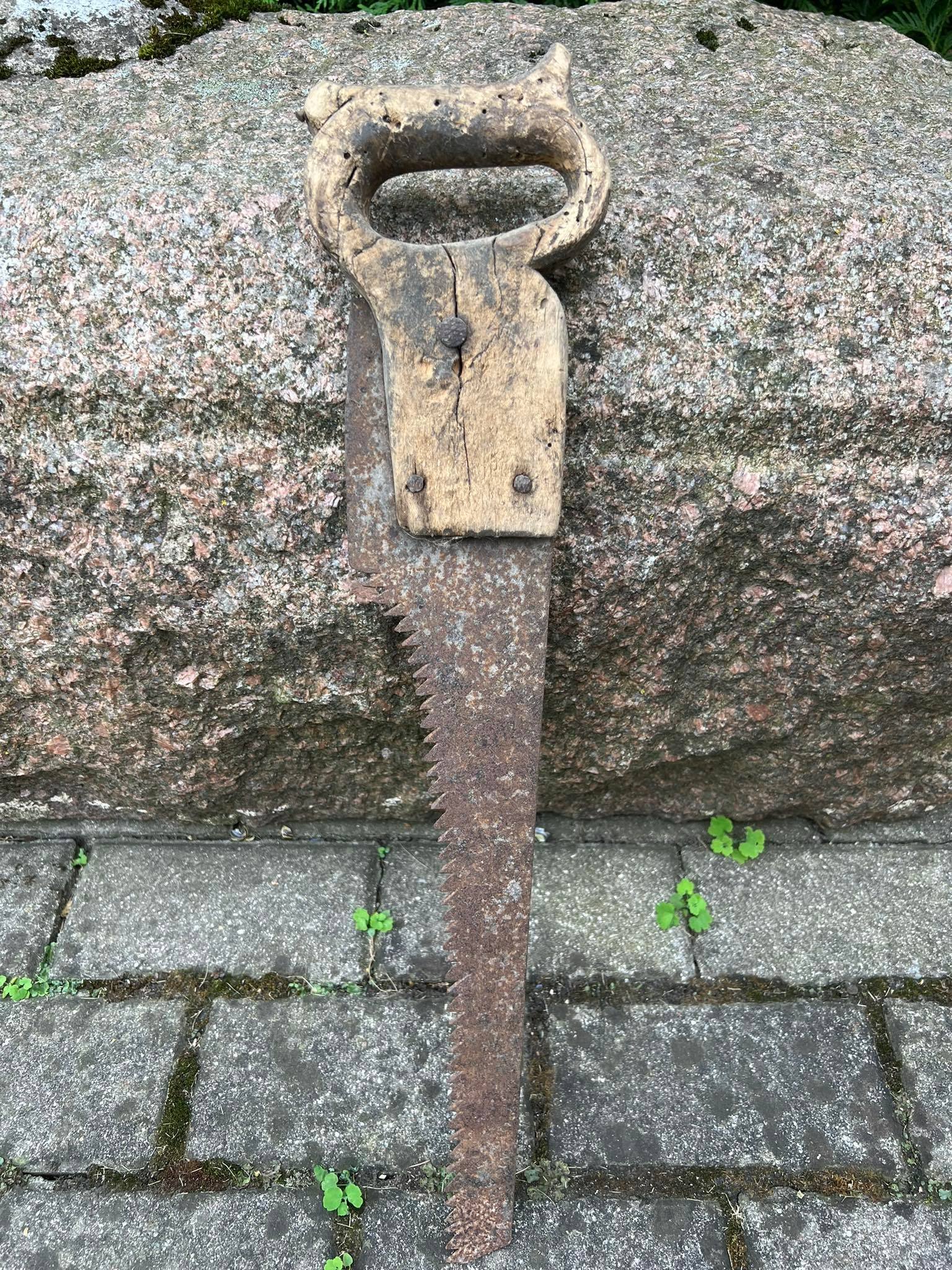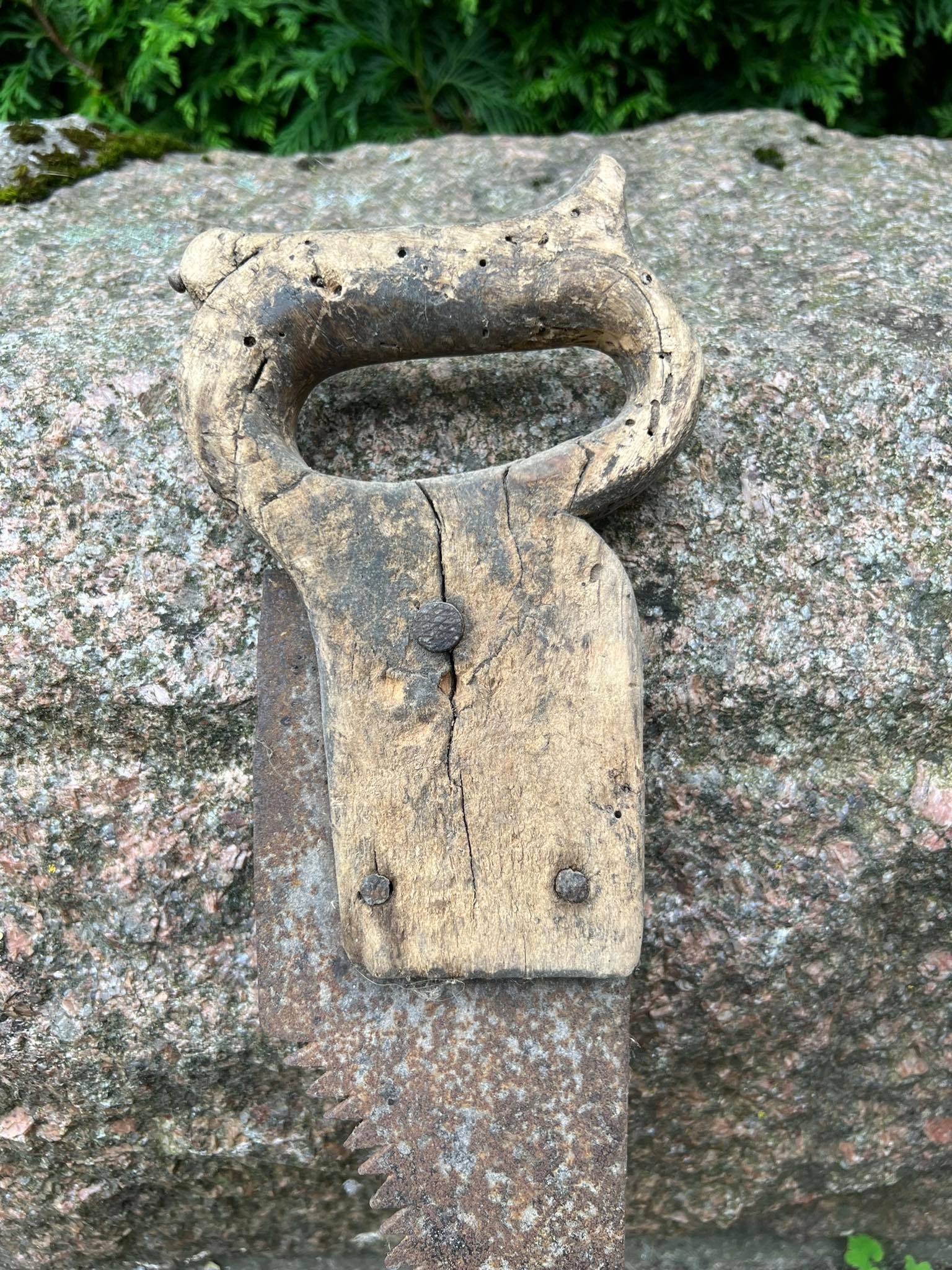 Pjūklas medine rankena, lietuviškas, antikvarinis. Kaina 18