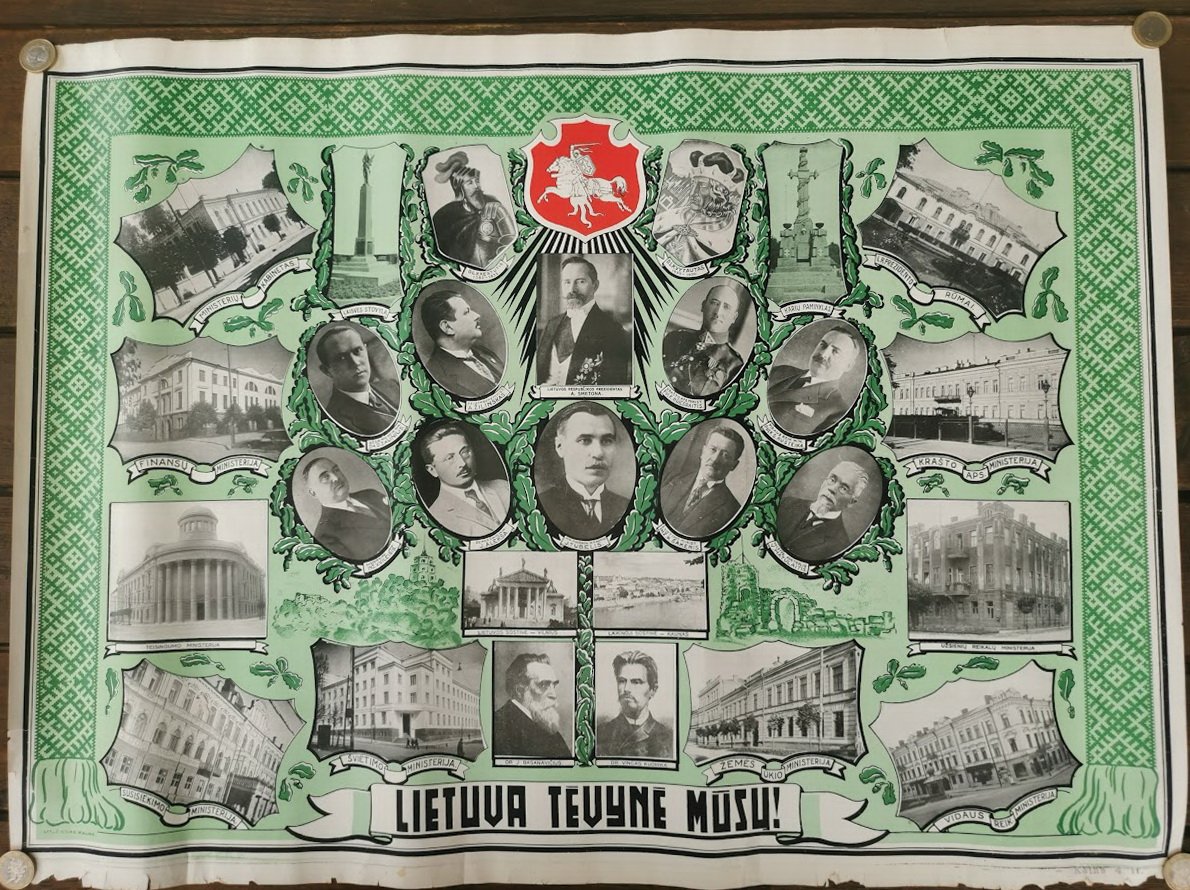 Plakatas lietuviškas tarpukario laikų LIETUVA TĖVYNĖ MŪSŲ!. Kaina 227
