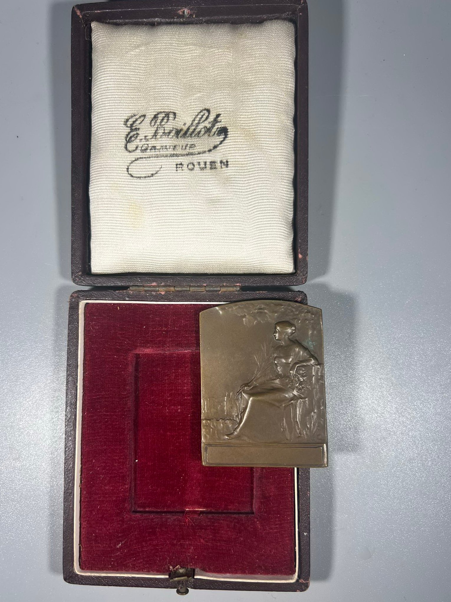 Plaketė antikvarinė bronzinė originalioje dėžutėje prancūziška, E. Boillot. Nenaudota. Dėžutės dydis: 1,8 x 7,5 x 9,5 cm. Kaina 63