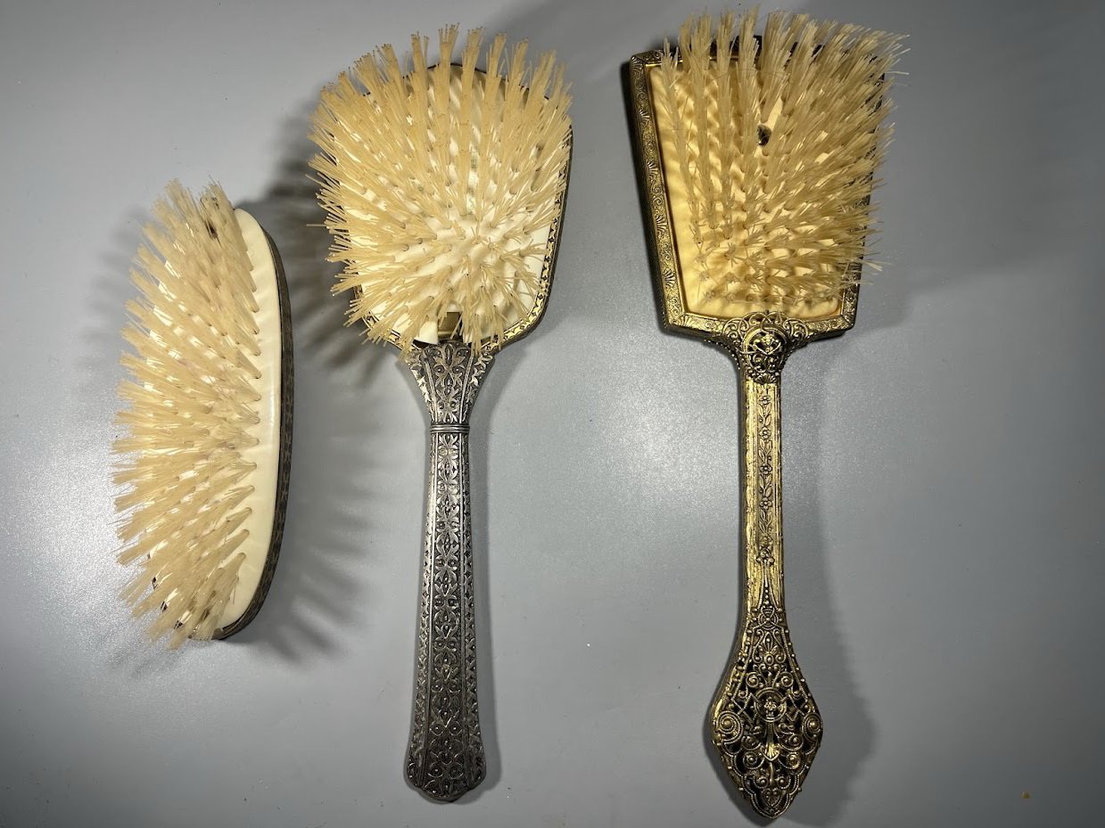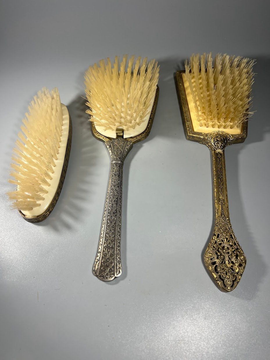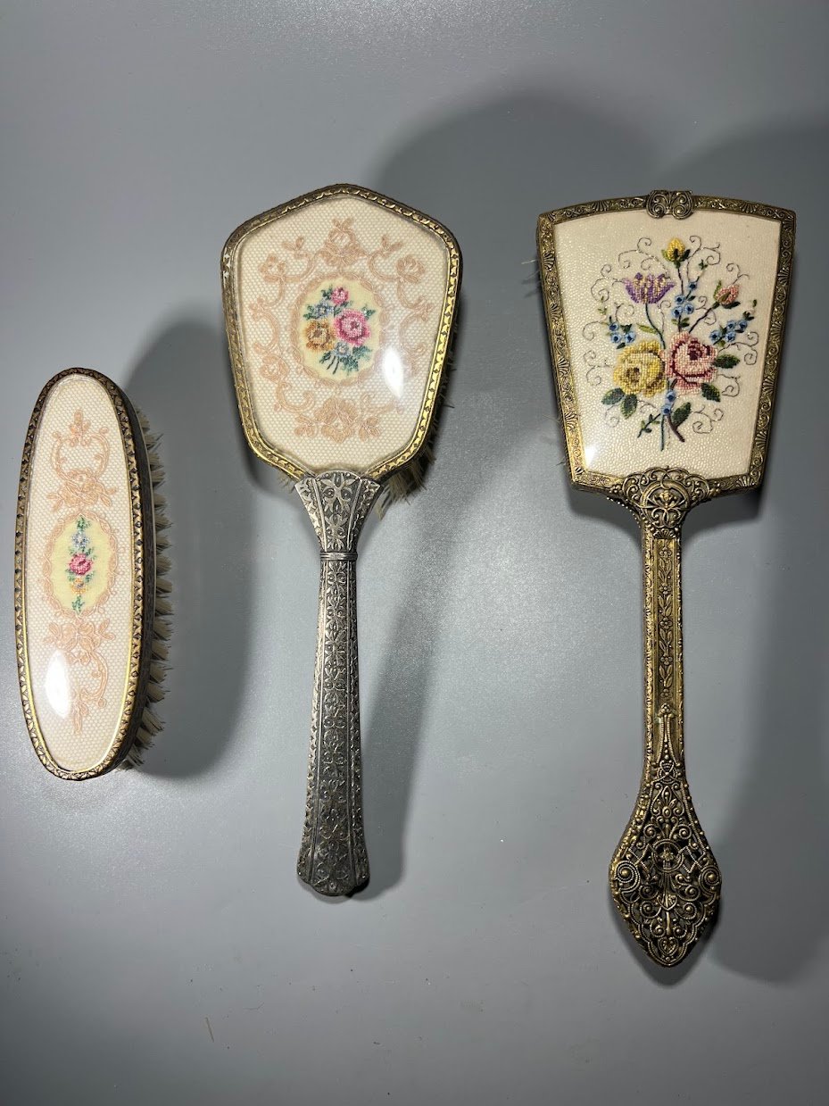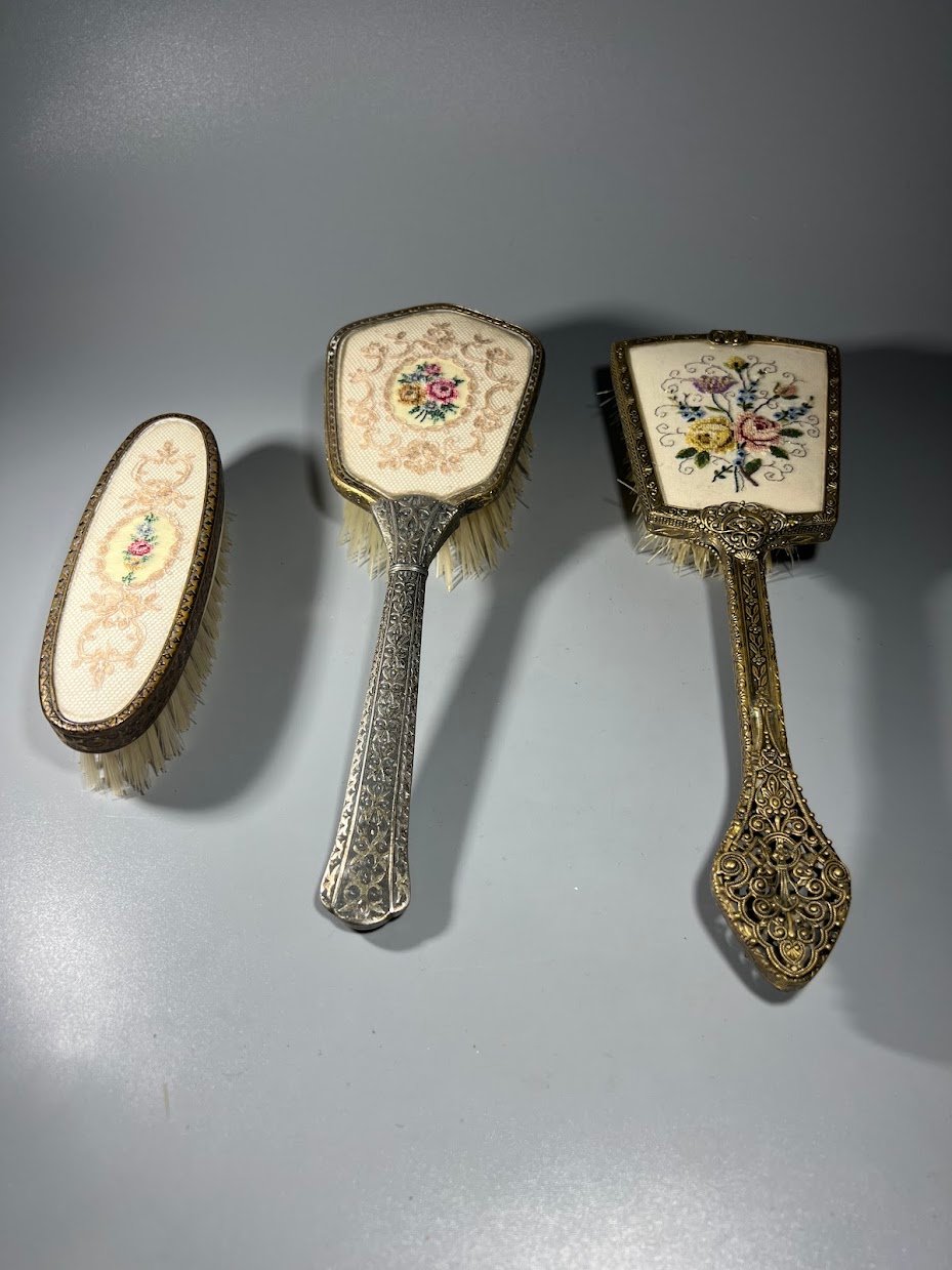 Plaukų šepetys siuvinėtas, angliškas, vintažinis. 3 vnt. Kaina po 13