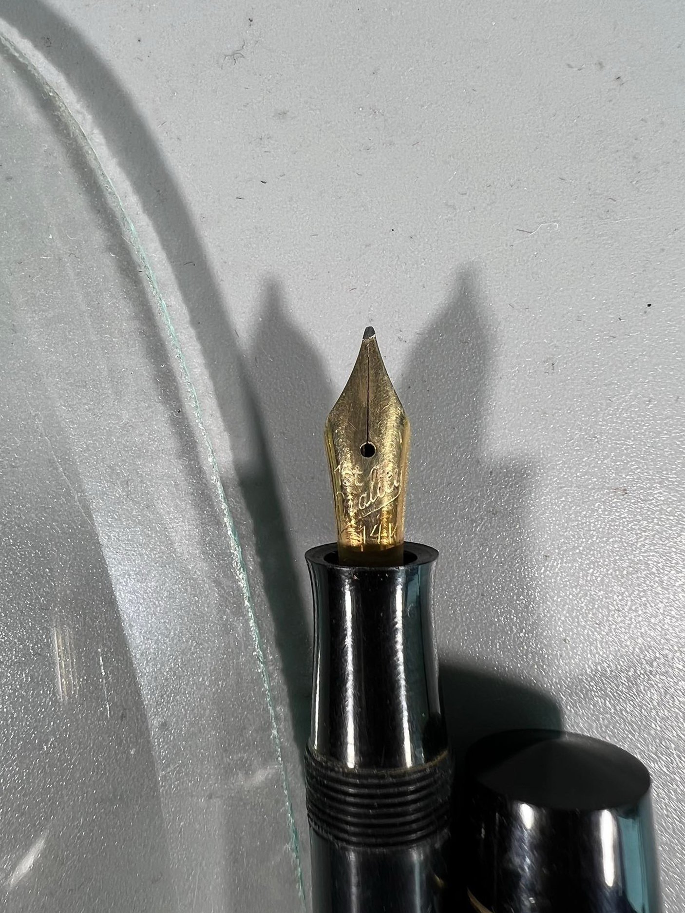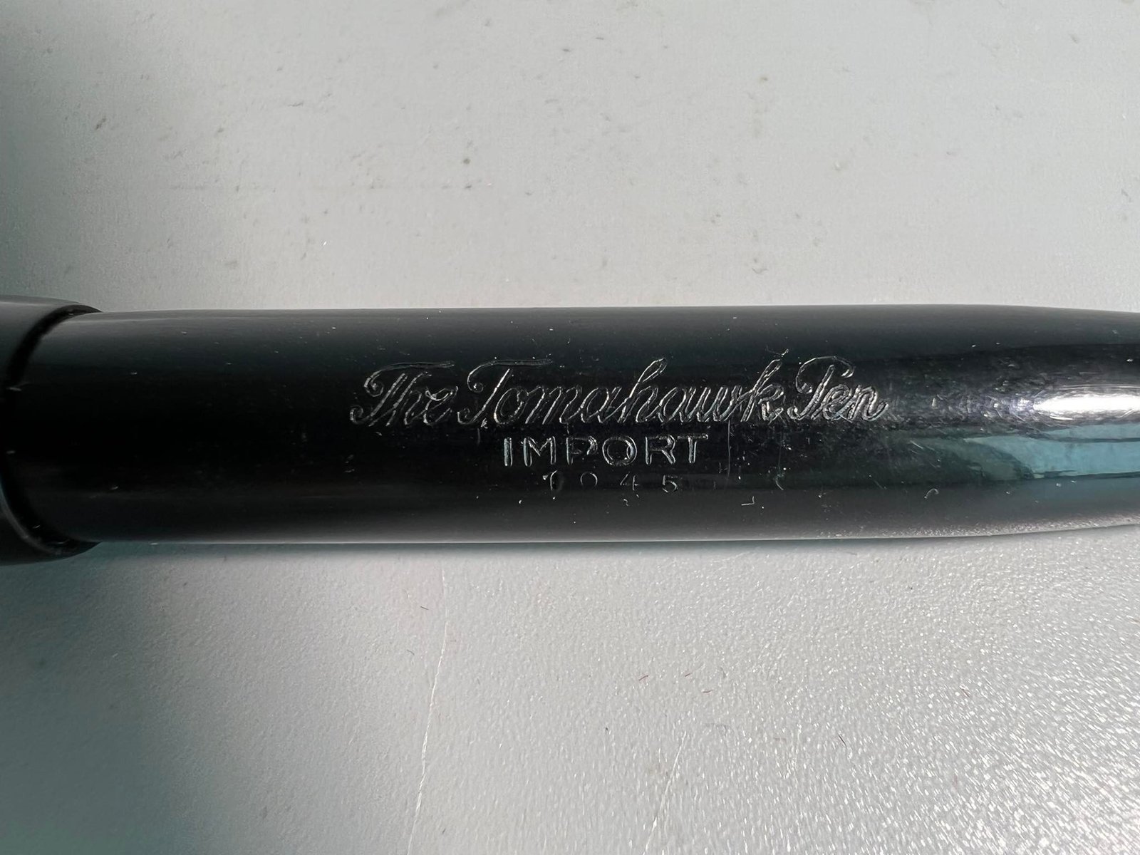 Plunksnakotis antikvarinis The Tomahawk Pen su 14 K auksine plunksna. Ilgis 13 cm. Kaina 83
