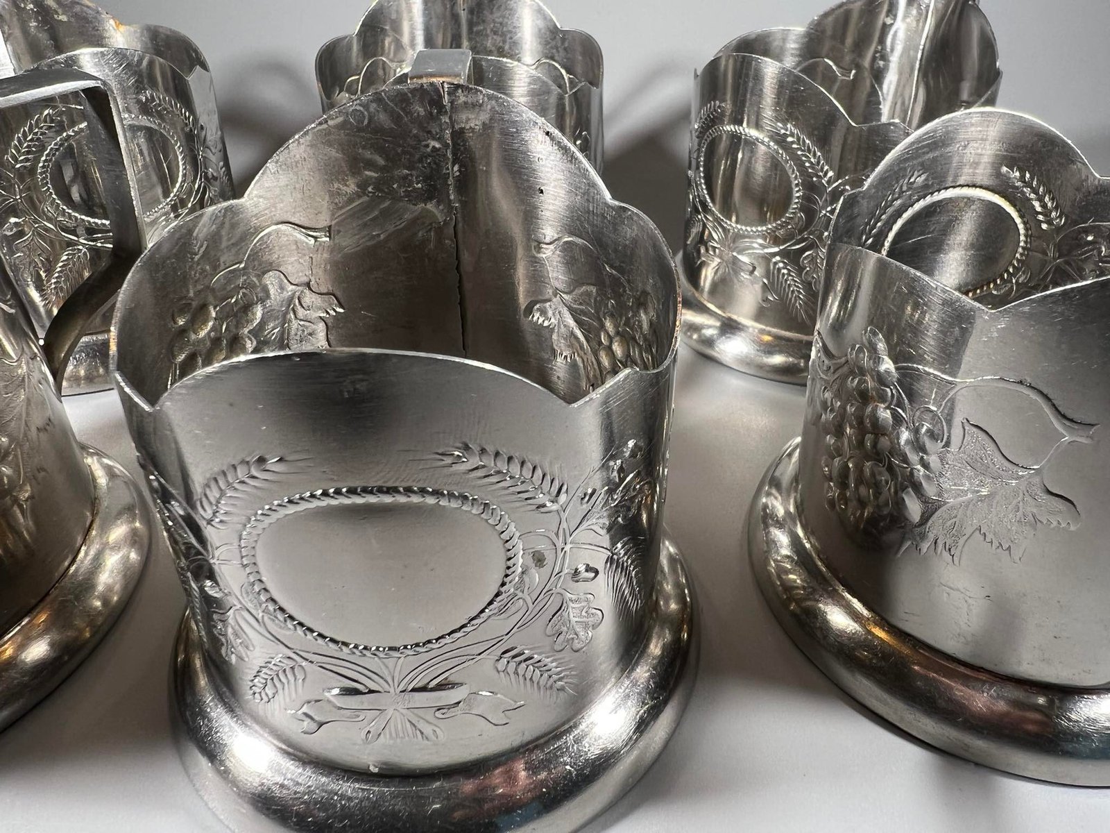 Podstakanikai, stiklinių laikiklai (Podstakannik. Tea glass holder). sovietiniai, tarybinių laikų. Įspaudas: Нержавеющая сталь. Nerūdijantis plienas. 6 vnt. Kaina po 17