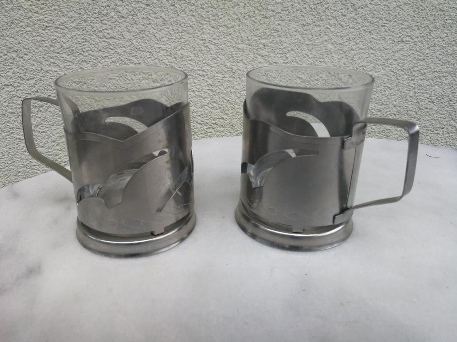 Podstakanikai (stiklinių laikikliai, dėtuvės), skardiniai, tarybiniai su žuvėdromis 2 vnt. Kaina po 8