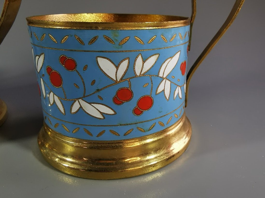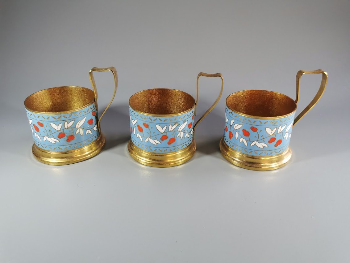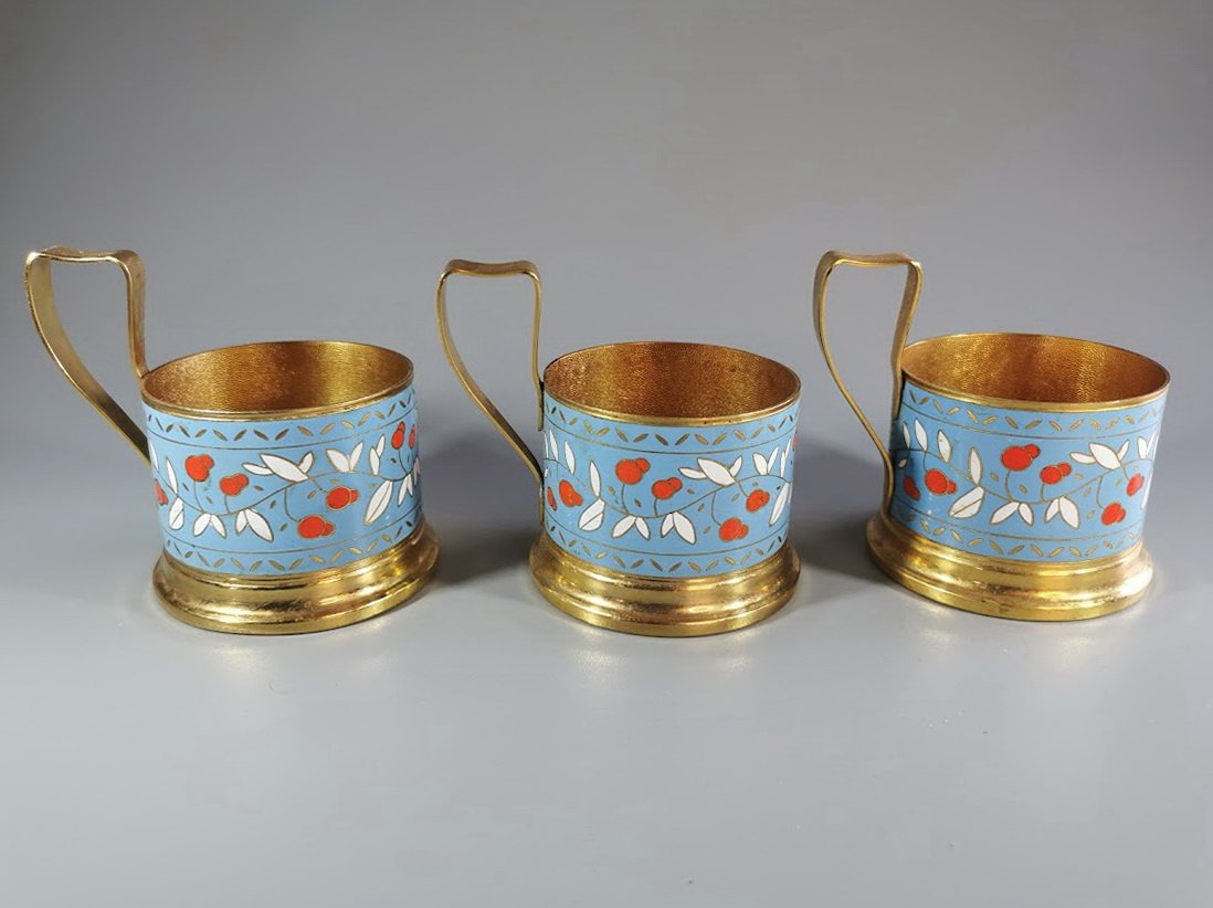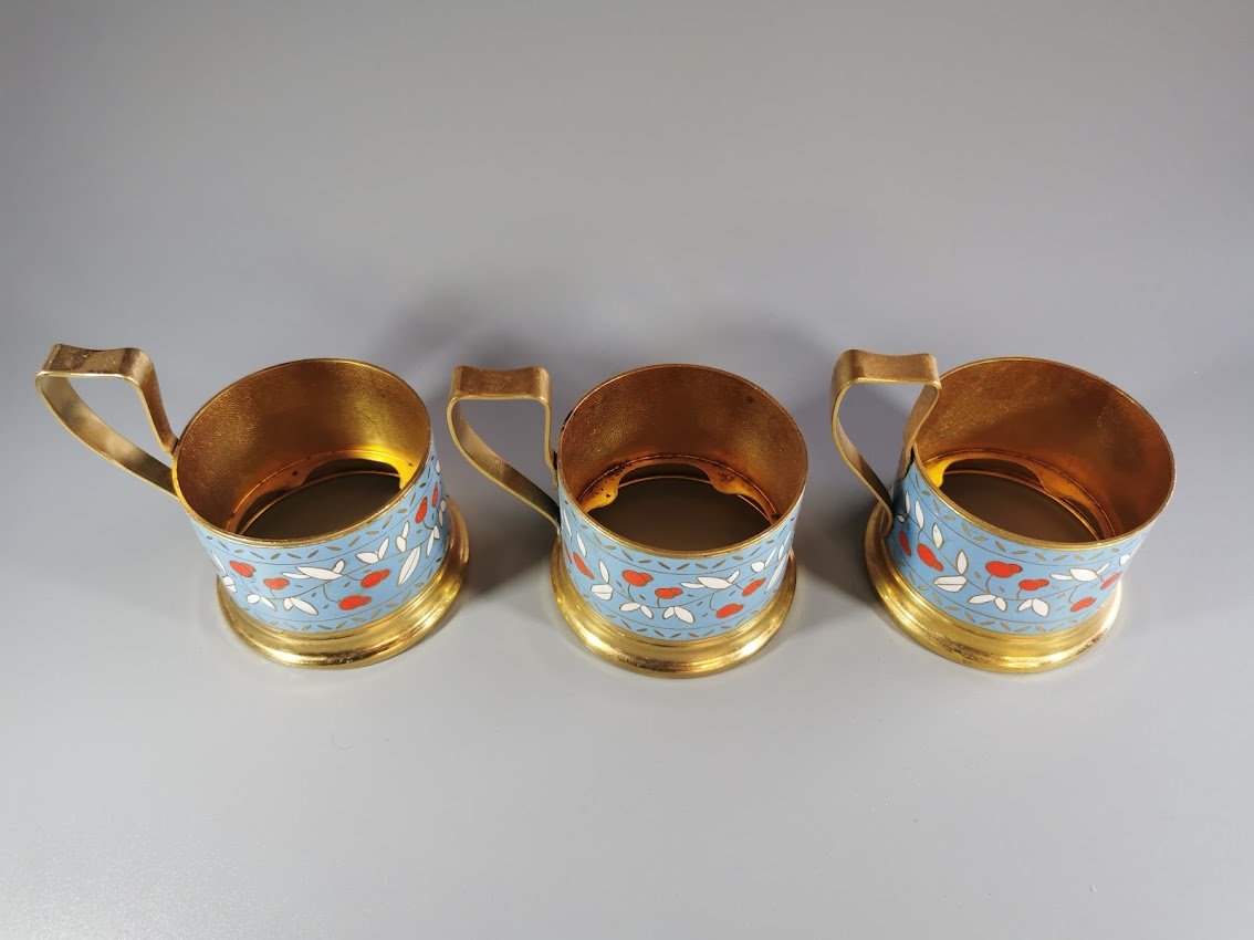 Podstakanikai, stiklinių laikikliai tarybiniai, puošti emale. 3 vnt. Kaina po 28