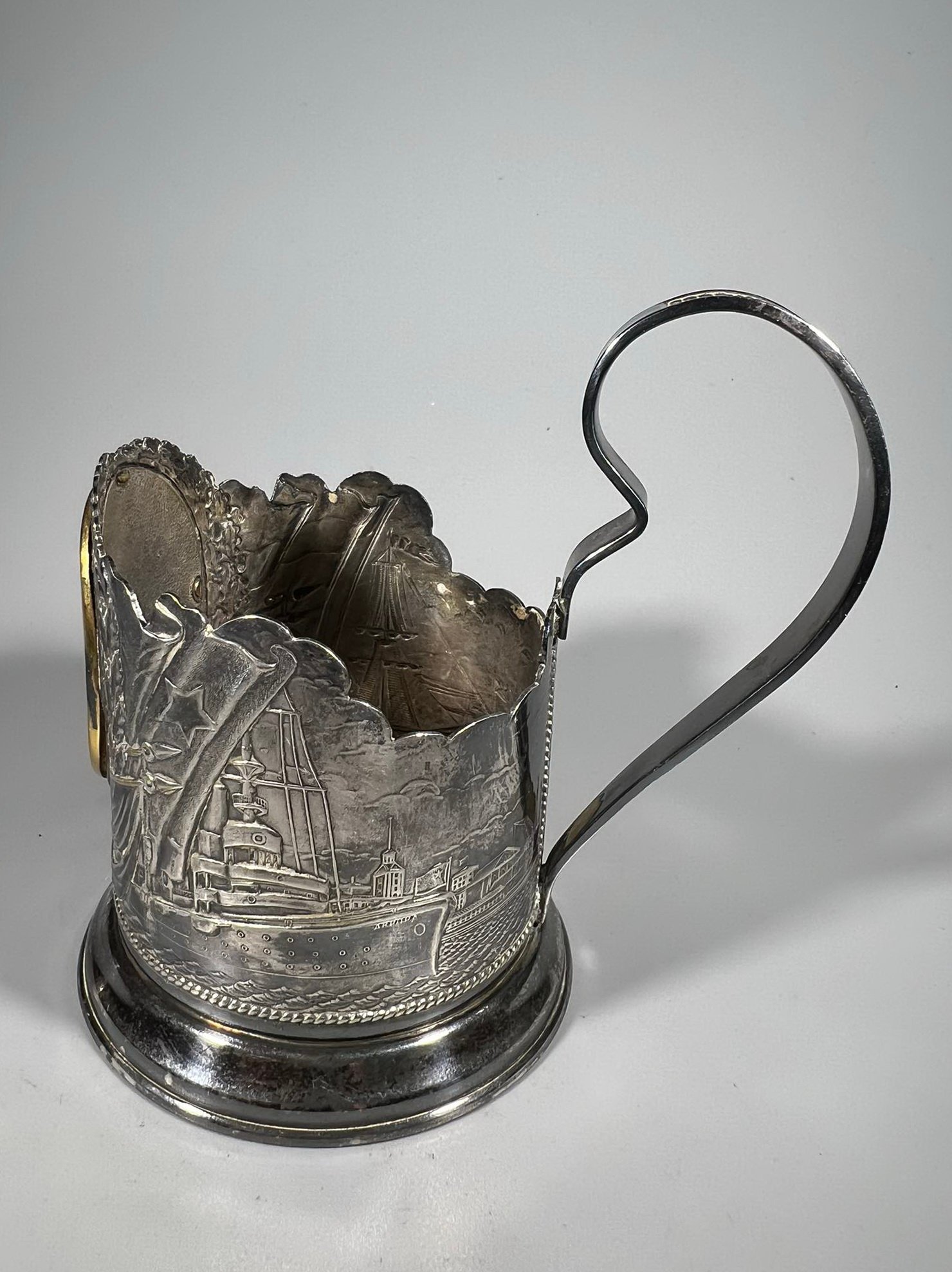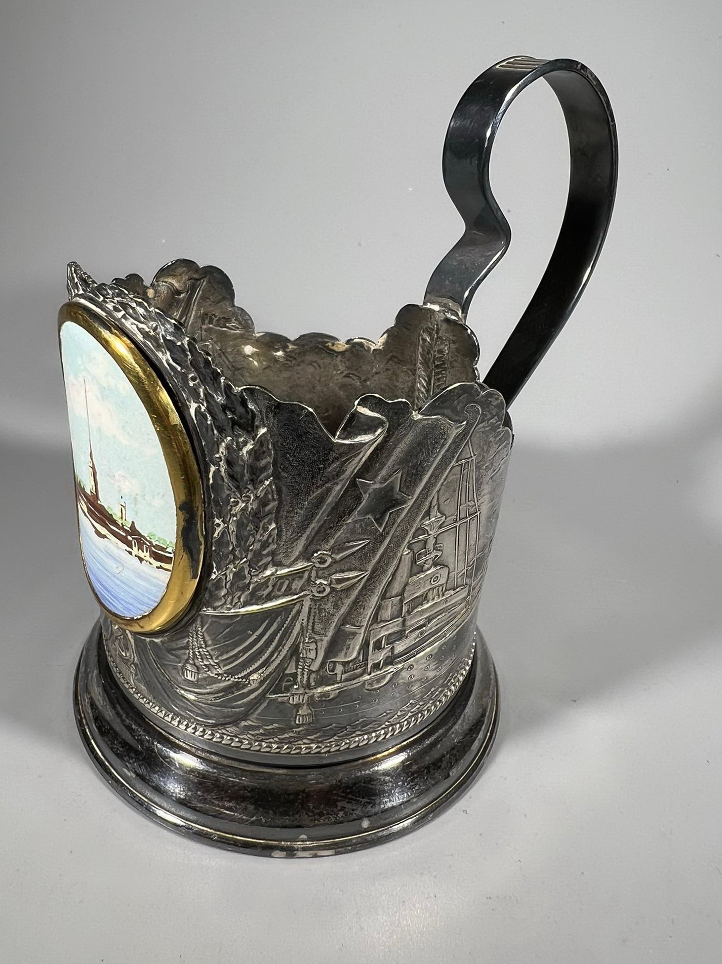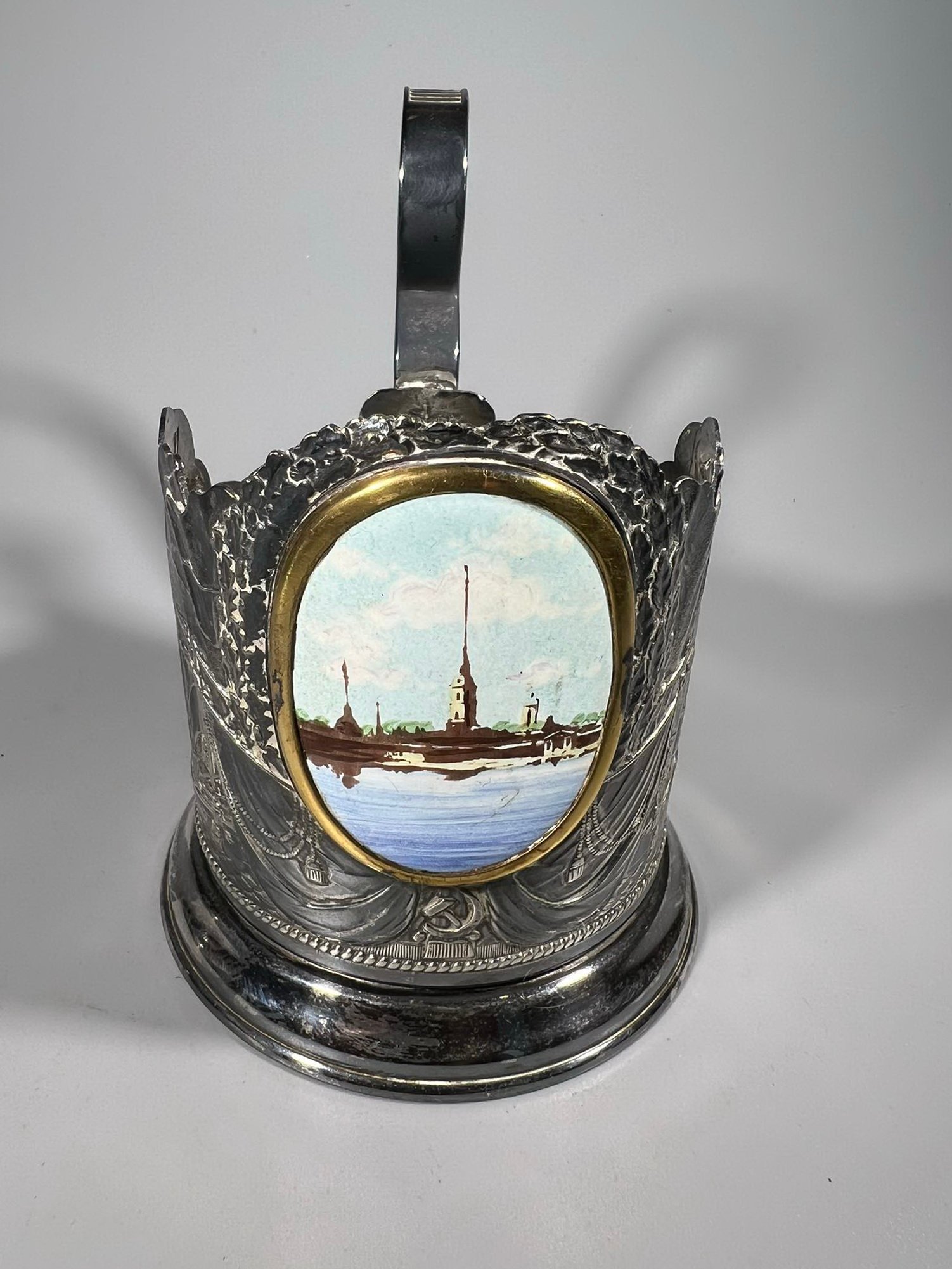 Podstakanikas, stiklinių laikiklis, ПОДСТАКАННИК ЛЕНЭМАЛЬЕР, 250 ЛЕТ ЛЕНИНГРАД, Петропавловская крепость. 1940-1950 m. Melchioras, emalė. Kaina 63