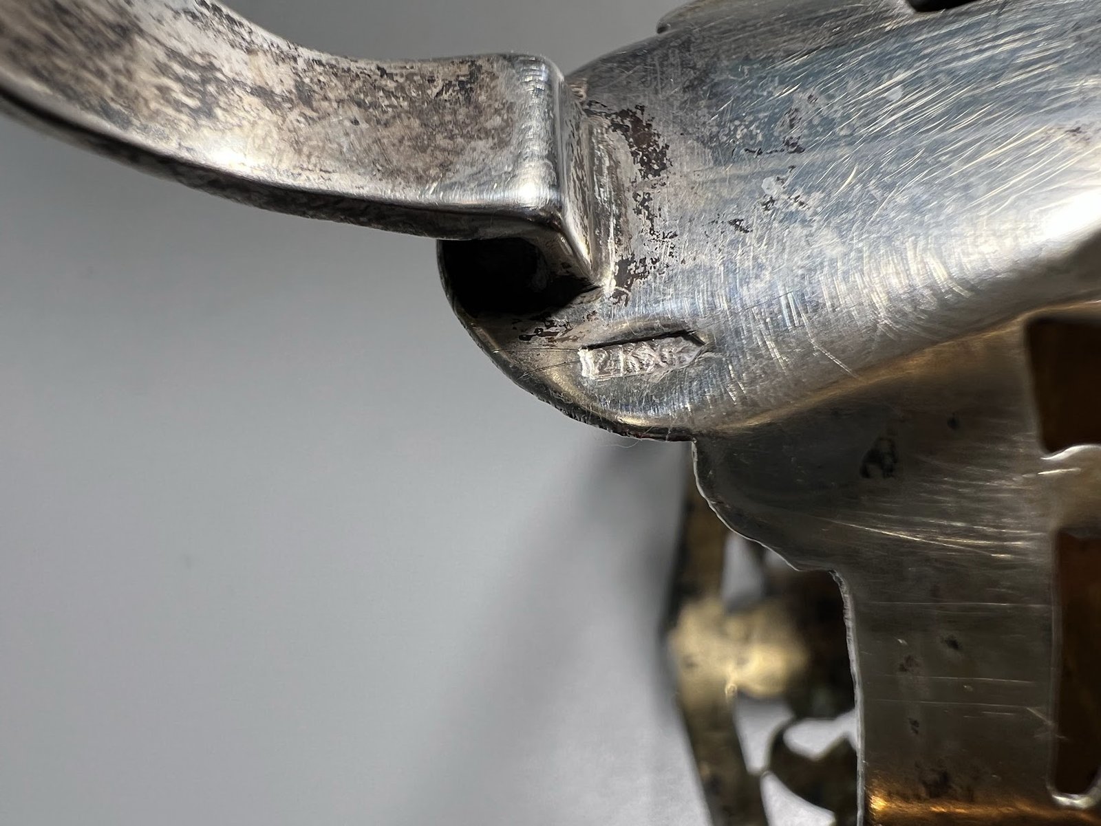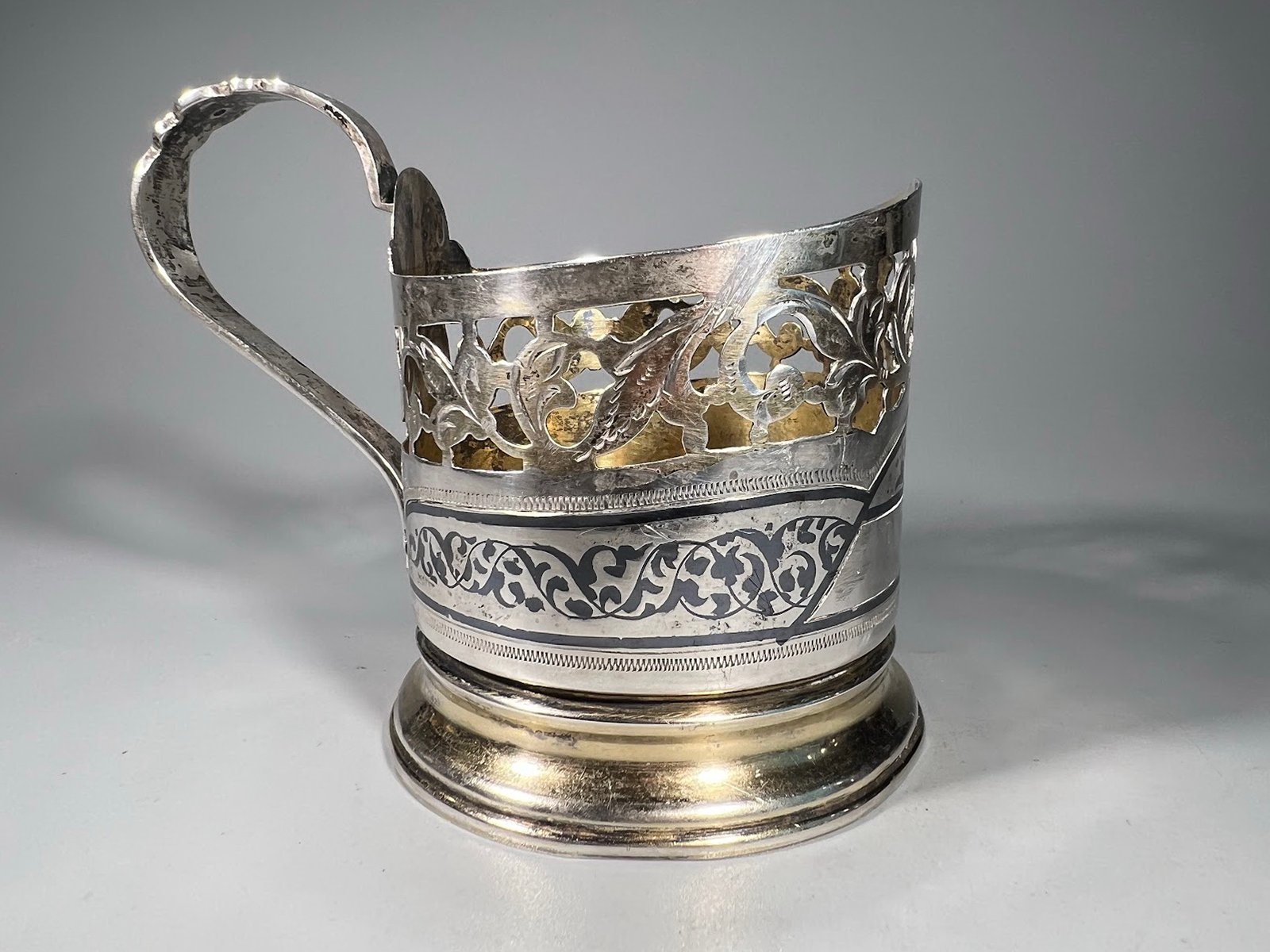 Podstakanikas, stiklinių laikiklis sidabrinis, antikvarinis Dagestan, Кубачи (Podstakannik, Tea glass holder). Praba 875. Svoris 83 g. 1955 m. Kaina 243