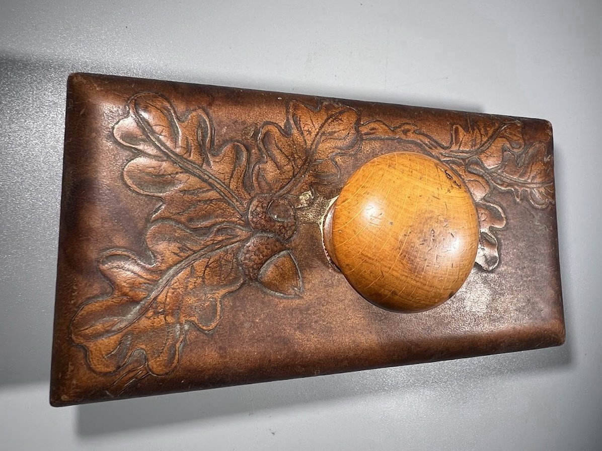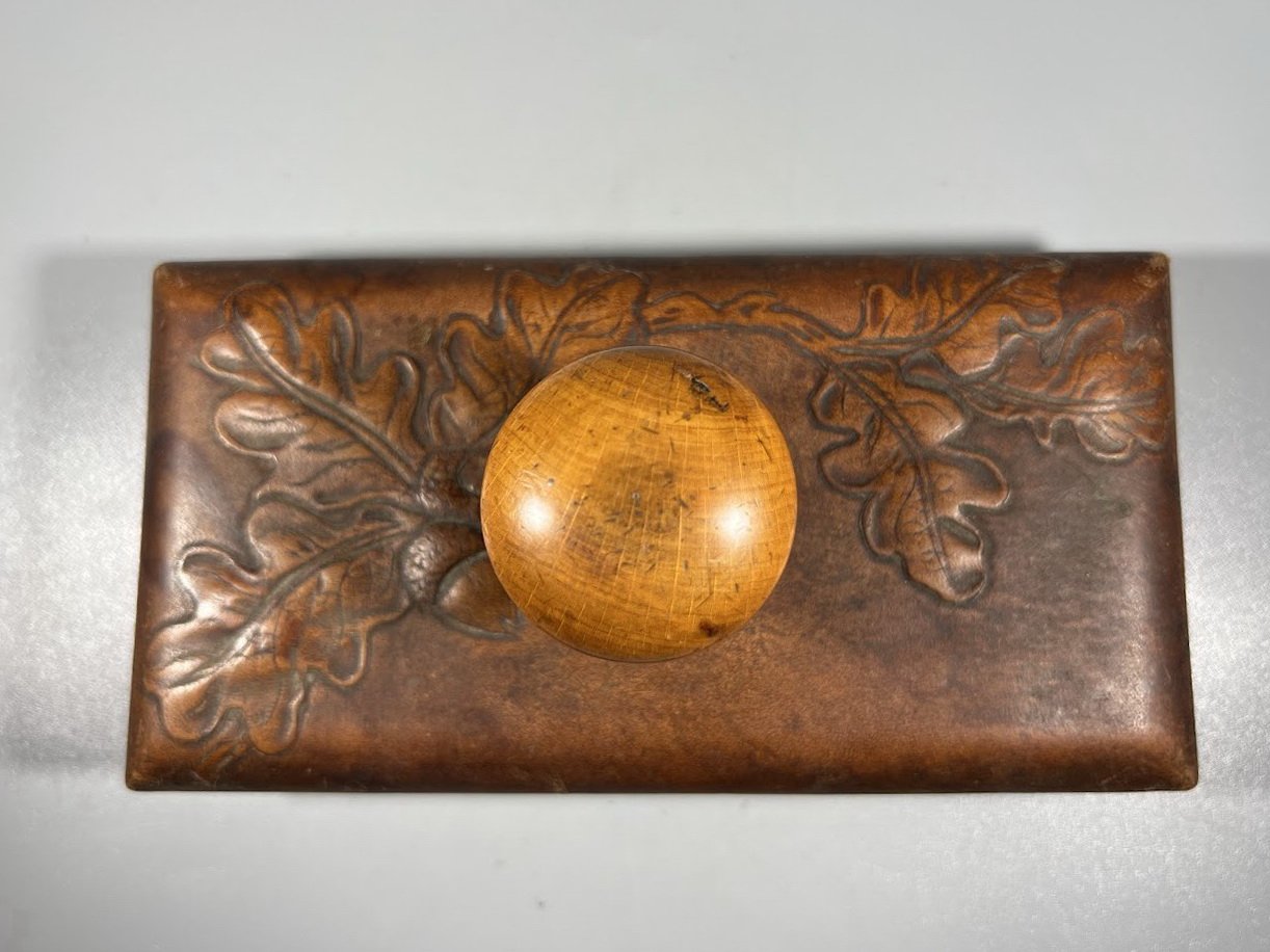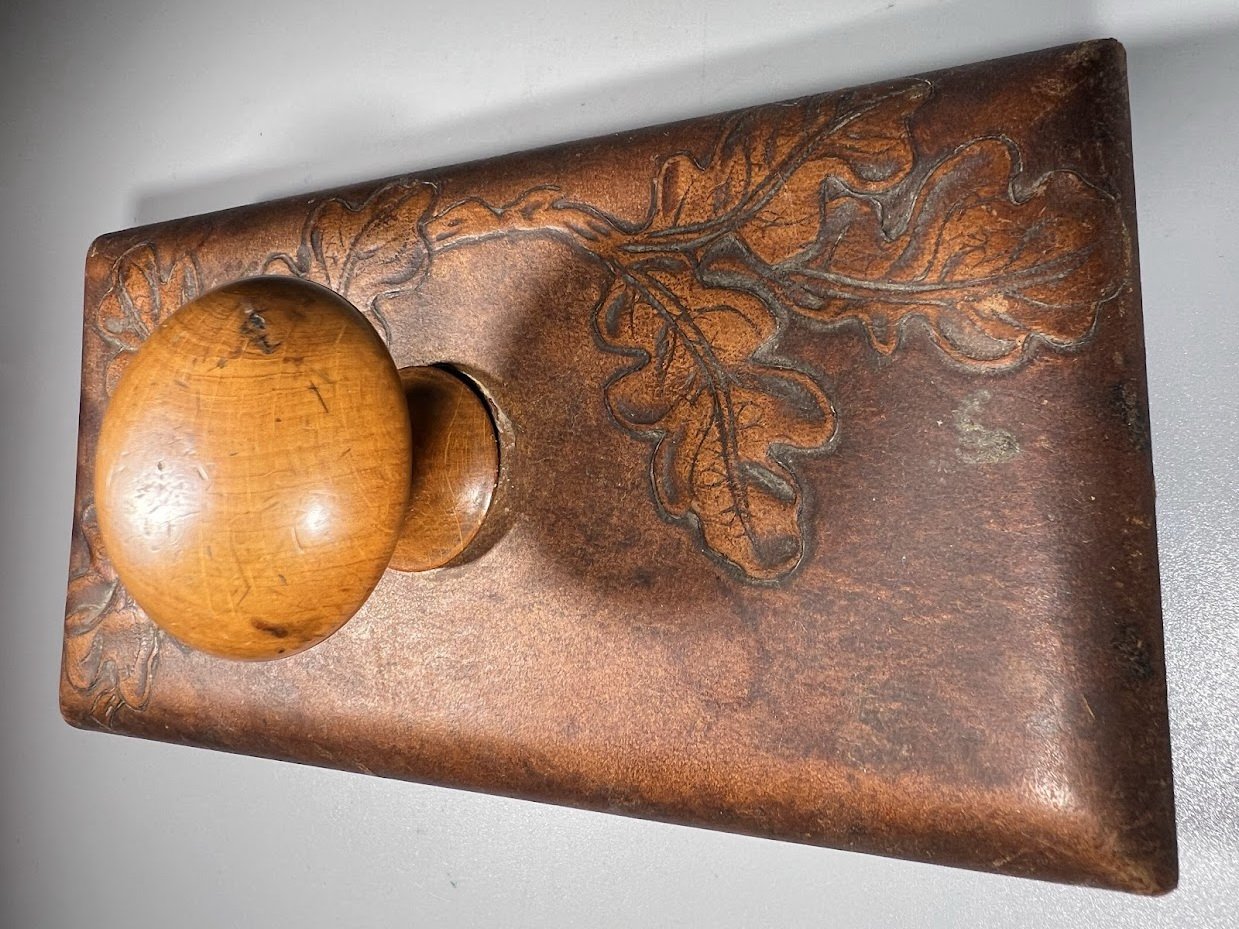 Prespapje, buvard antikvarinis, drožinėtas ąžuolo motyvais, tarpukario laikų, Art Deco stiliaus. Kaina 53