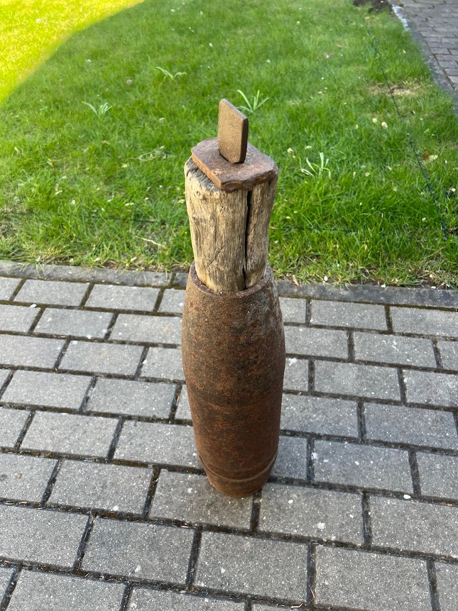 Priekalas savadarbis – tuščia artilerijos sviedinio gilzė, tūta, antikvarinė, I PK laikų. Kaina 158