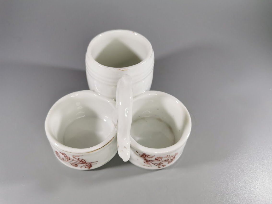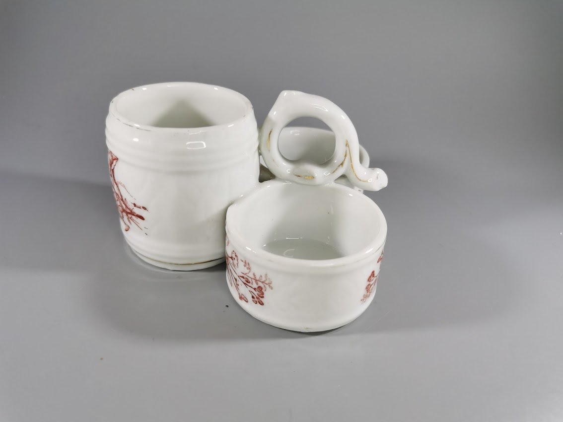 Prieskoninė antikvarinė, porcelianinė. Aukštis 7, dydis: 11 x 12 cm. Kaina 26