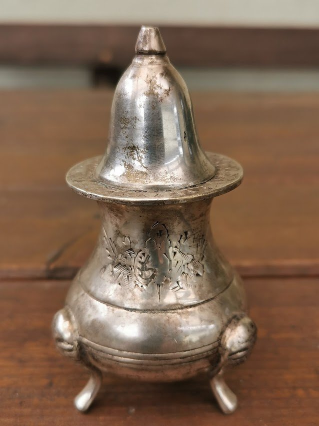 Prieskoninė antikvarinė, sidabruota. Aukštis 10 cm. Kaina 12