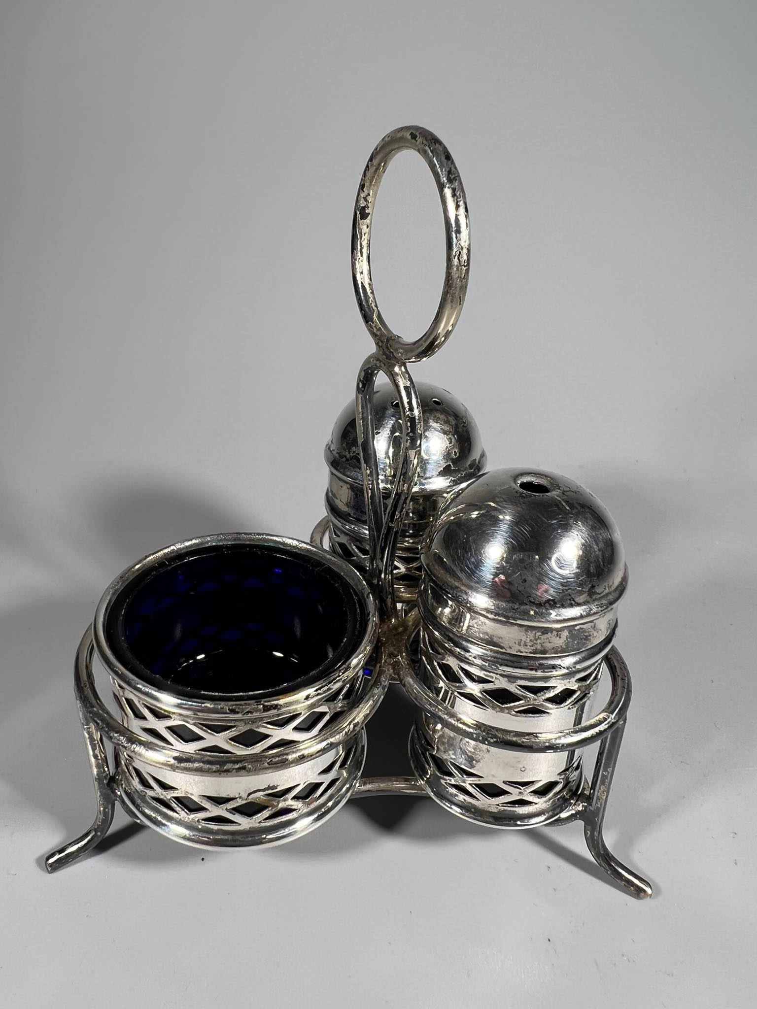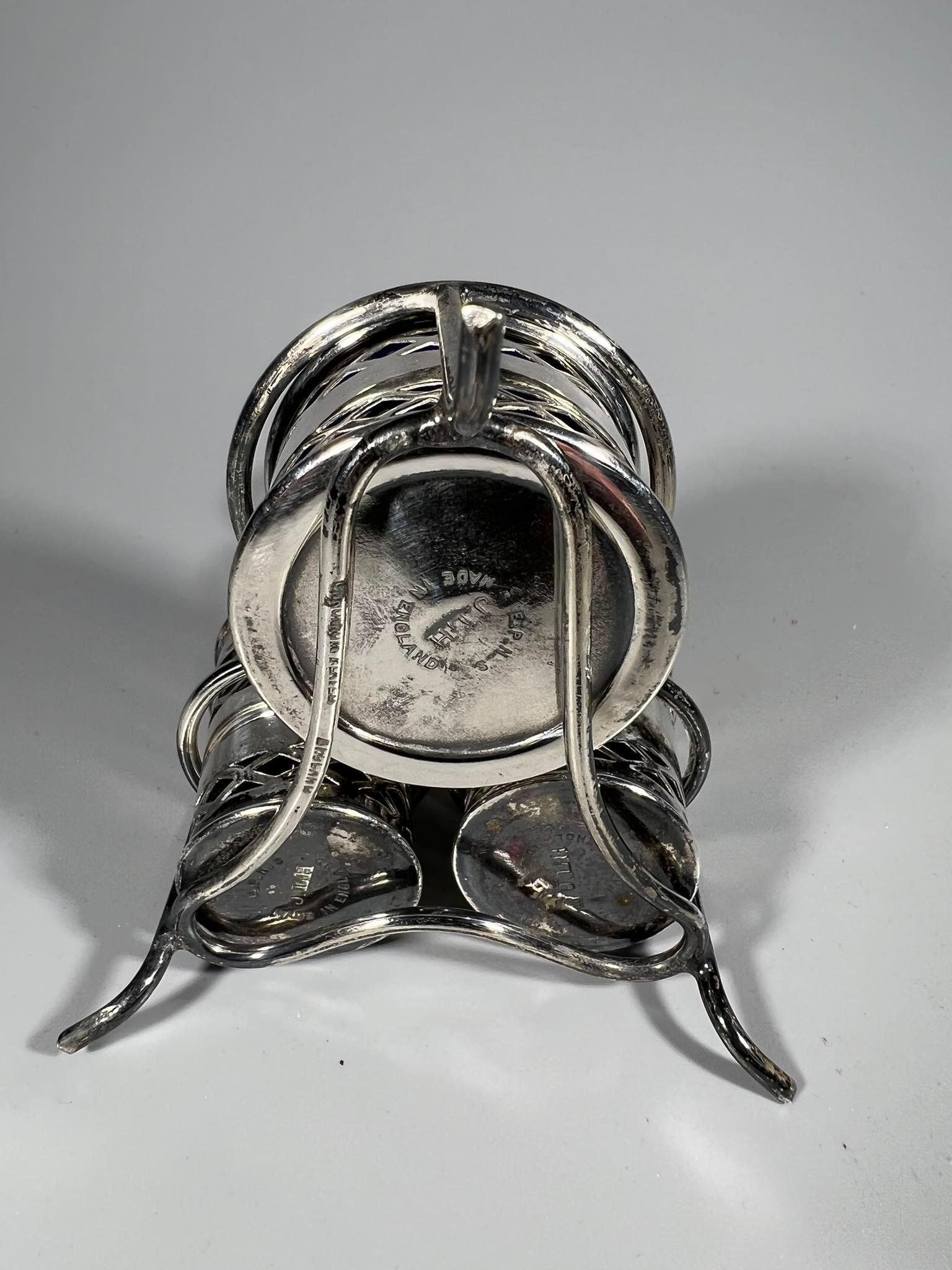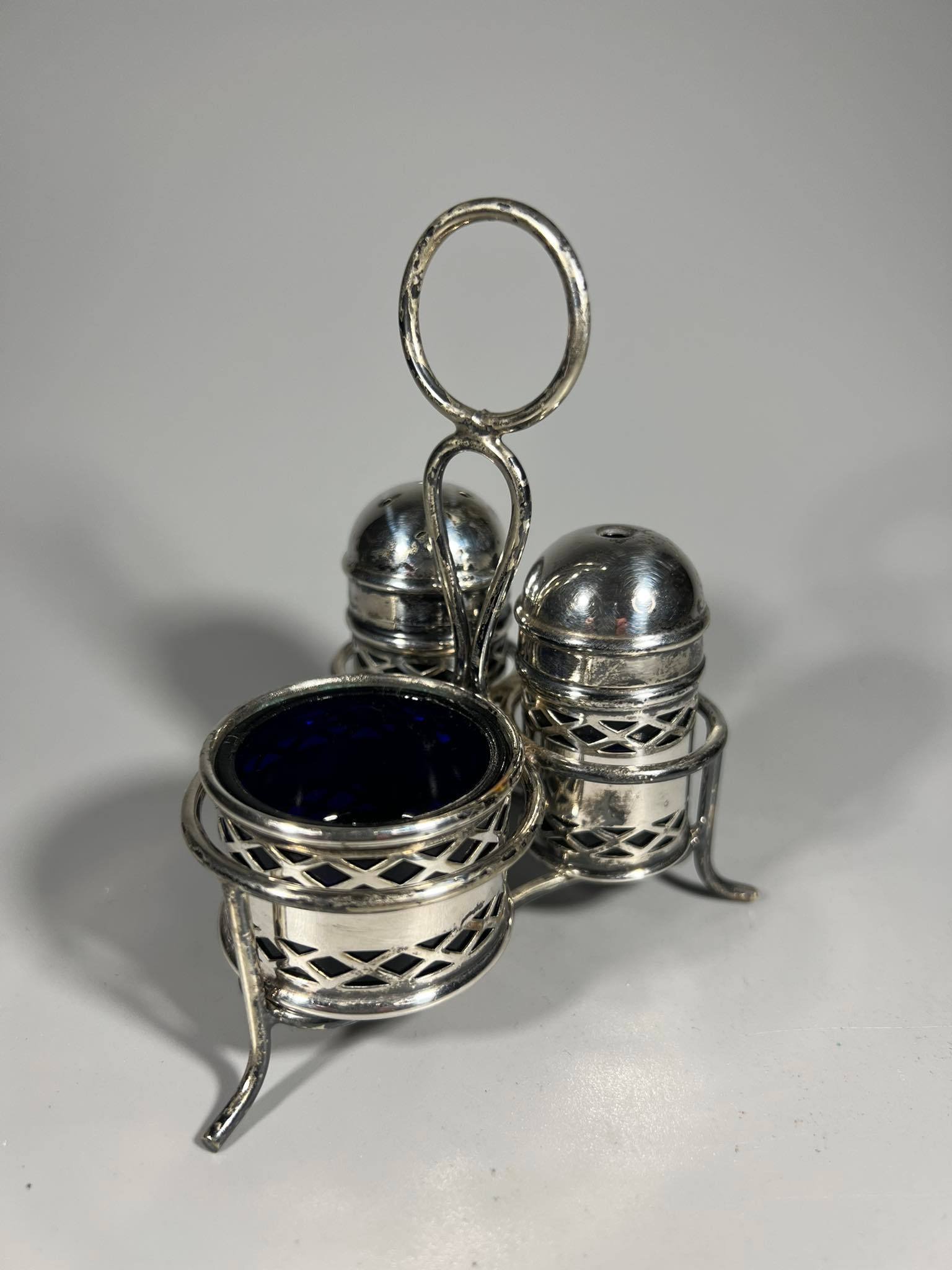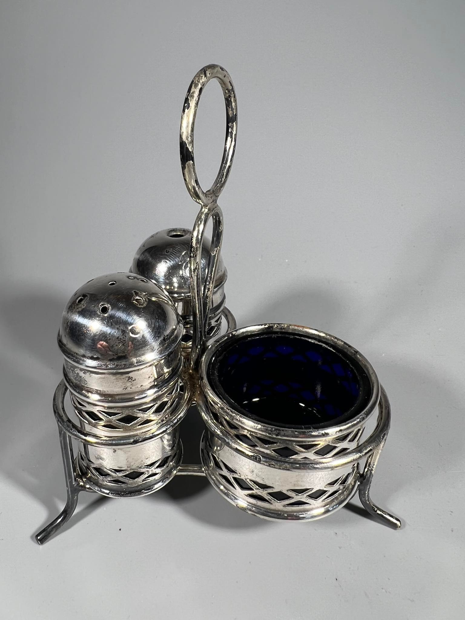 Prieskoninių rinkinys, komplektas, antikvarinis, sidabruotas, mėlynas stiklas. E.P.N.S. Made in England. Kaina 28