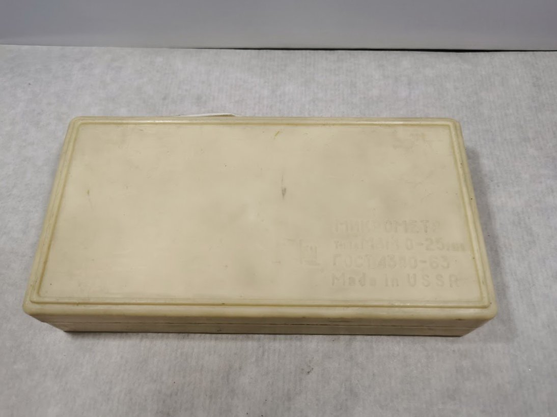 Prietaisas Mikrometras tarybinis, su dokumentais. Dėžutės dydis: 9 x 17 cm. Kaina 23
