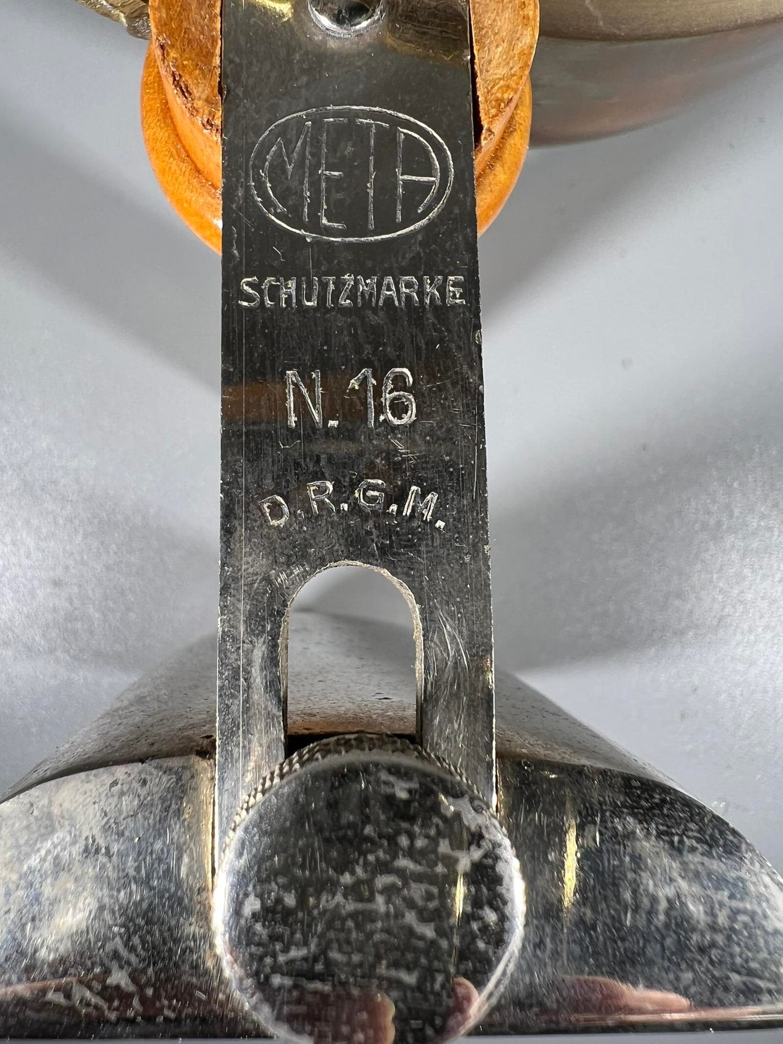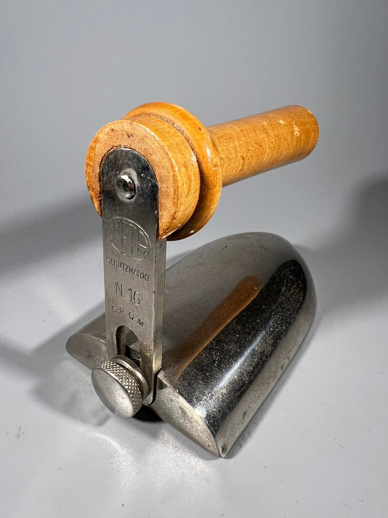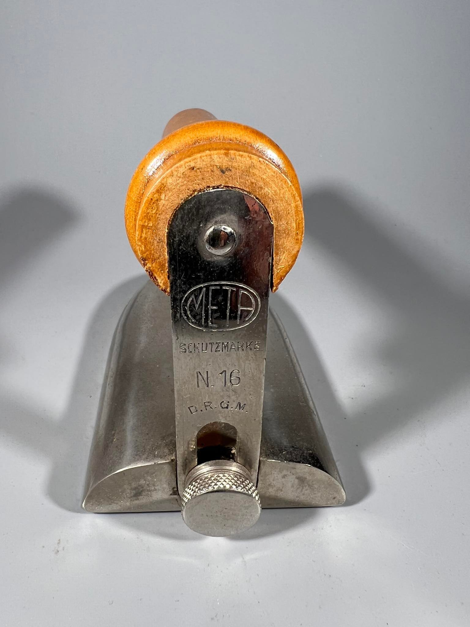 Prosas, lygintuvas, lygintuvėlis antikvarinis, Meta Schutzmarke N. 16, D.R.G.M. (Deutsches Reichs Gebrauchs Muster). Kaina 38