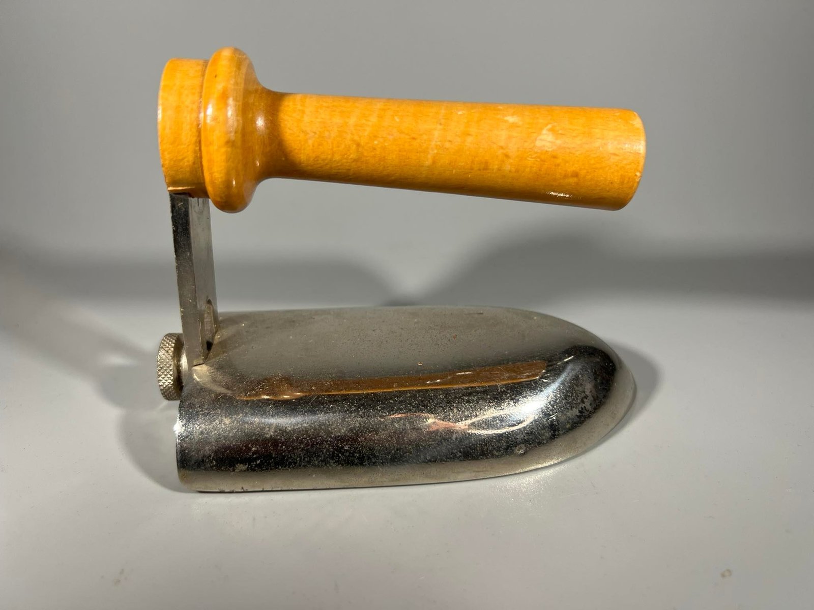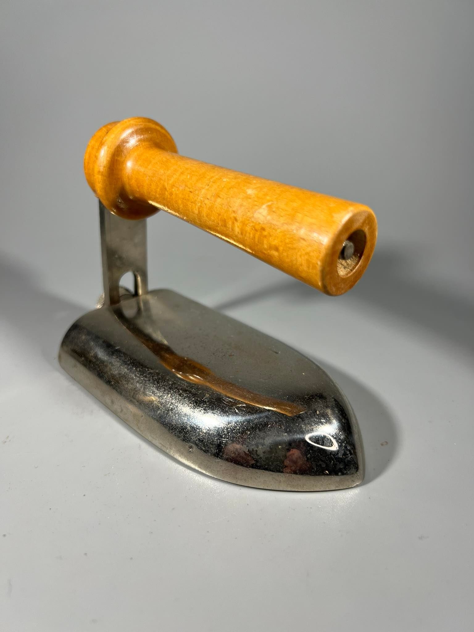 Prosas, lygintuvas, lygintuvėlis antikvarinis, Meta Schutzmarke N. 16, D.R.G.M. (Deutsches Reichs Gebrauchs Muster). Ilgis 12, aukųtis 9, plotis 6,5 cm. Kaina 38