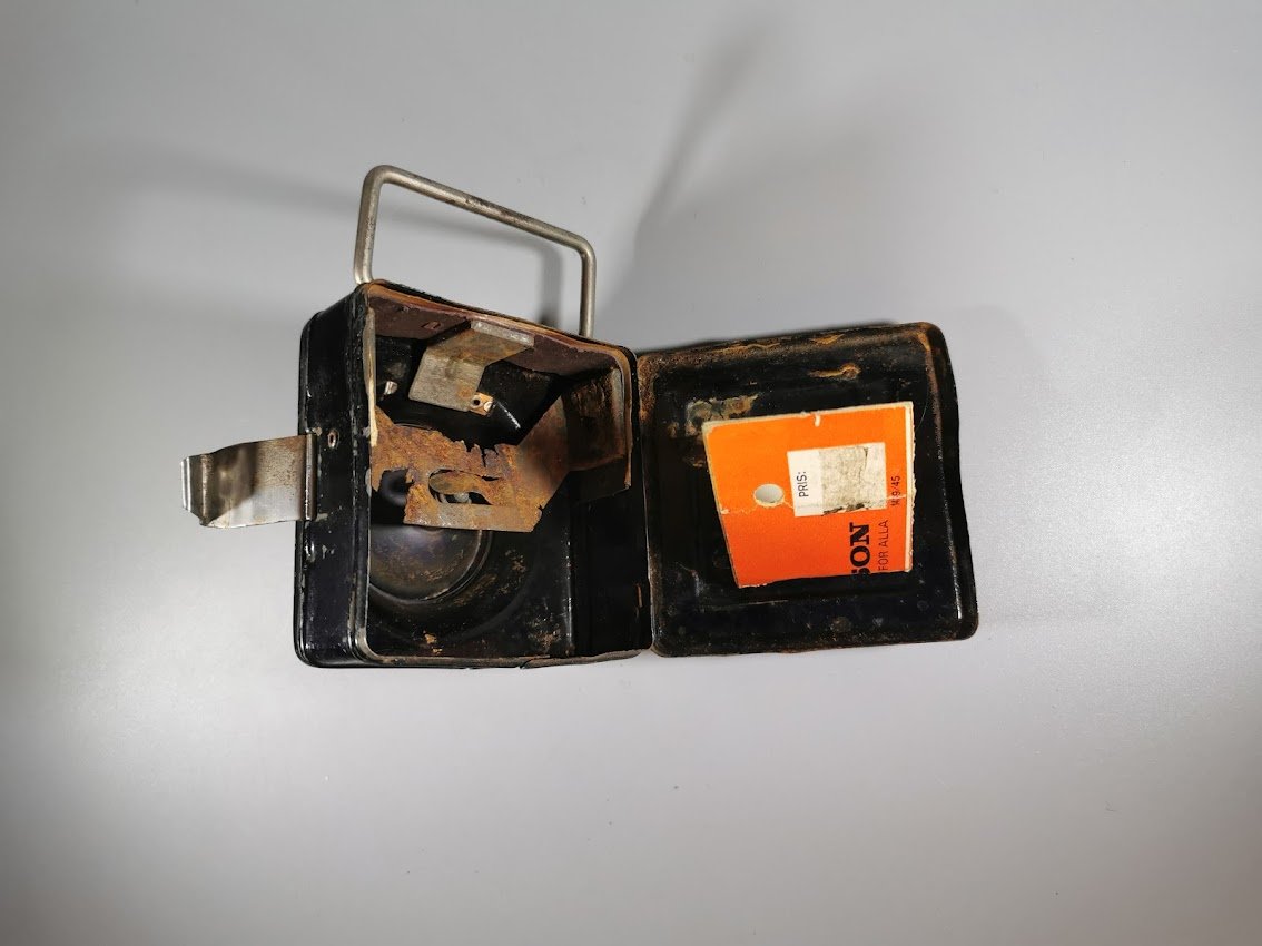 Prožektorius antikvarinis. Netikrintas. Korpuso dydis: 7 x 7 x 9 cm. Kaina 23