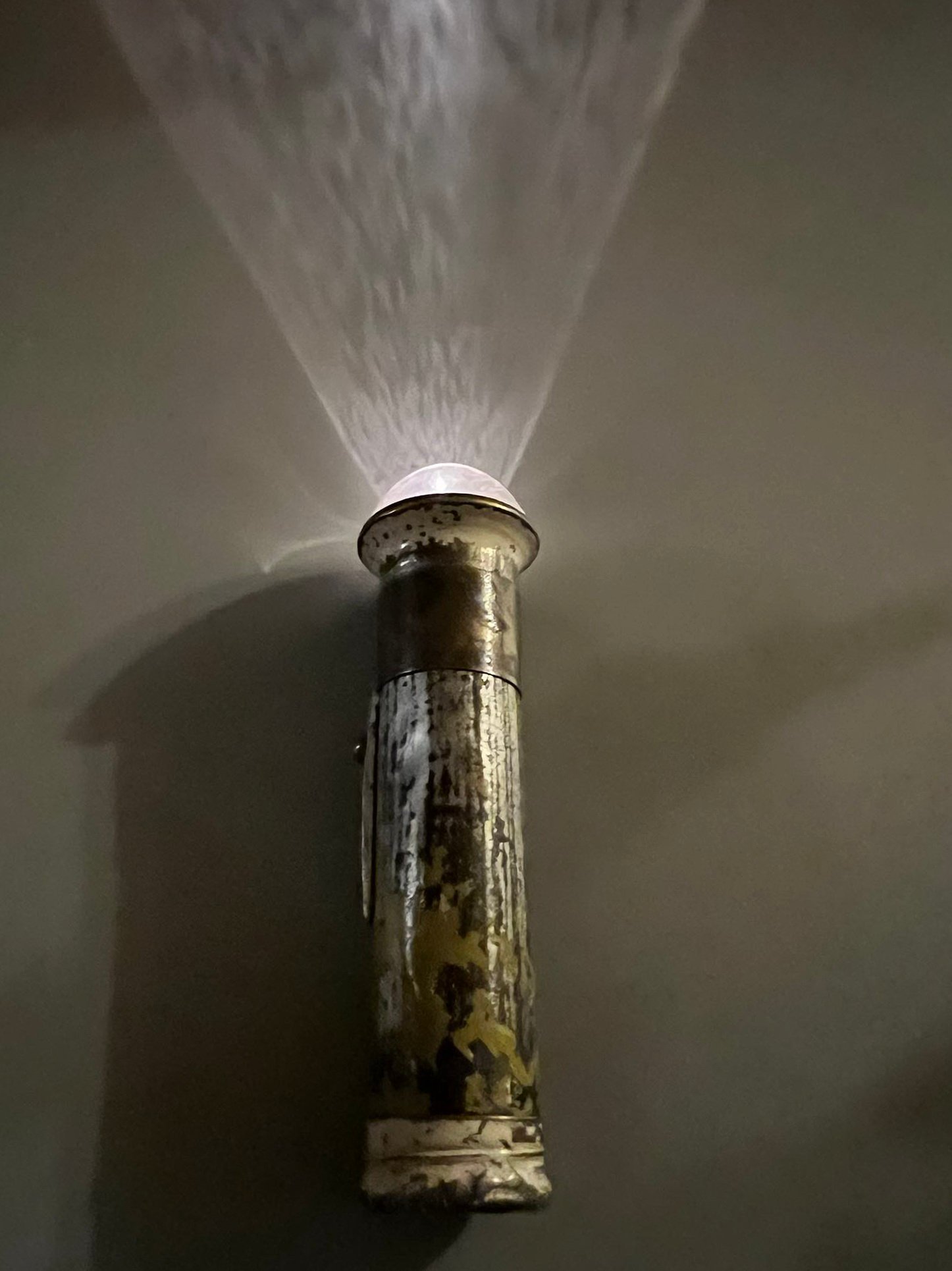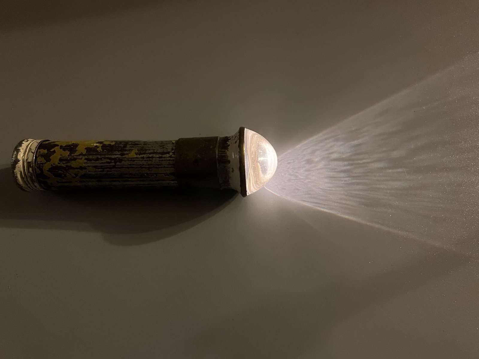 Prožektorius vokiškas kariškas. GERMAN ARMY SIGNAL FLASHLIGHT. Veikiantis. Ilgis 12 cm. Kaina 38