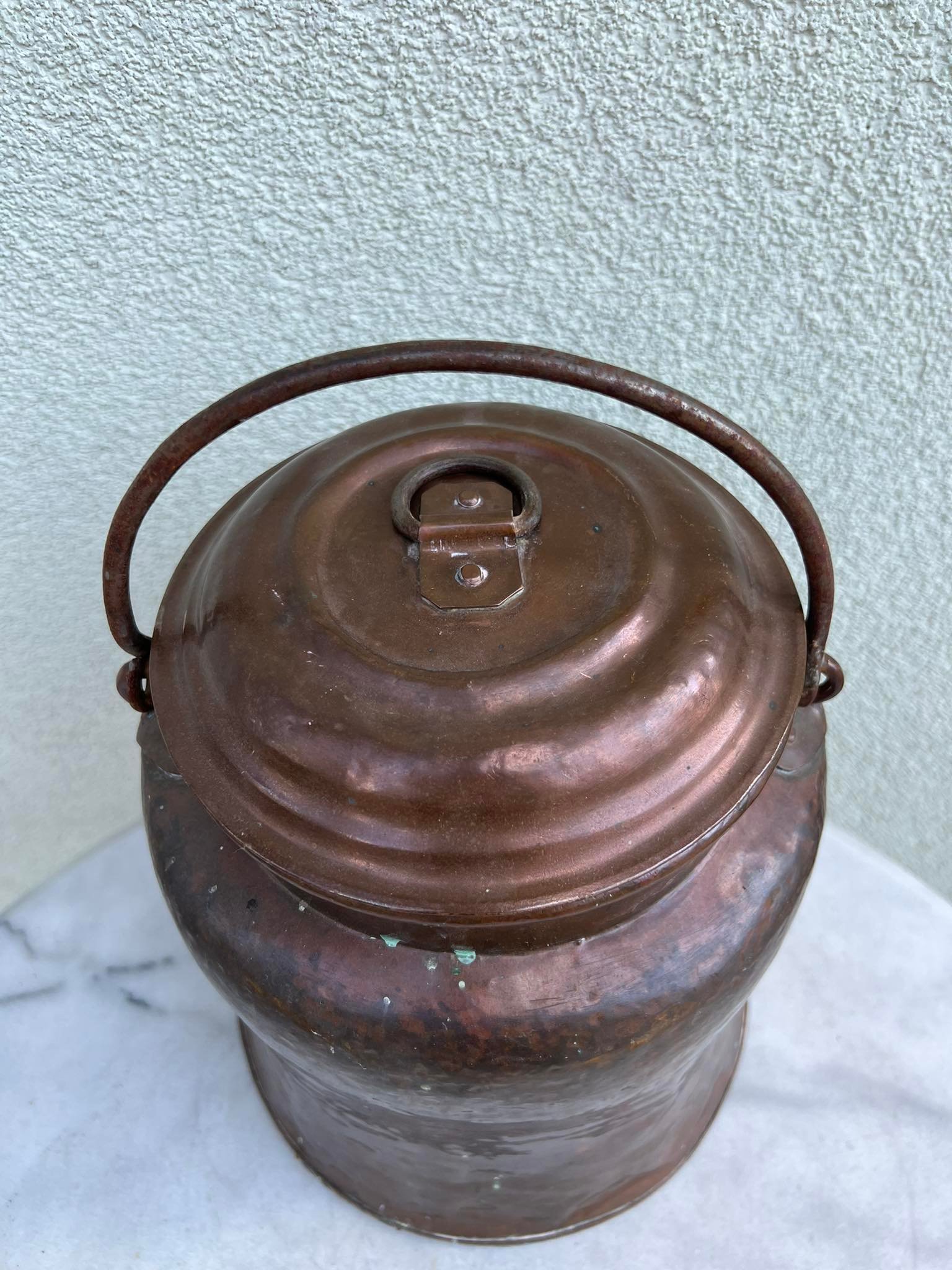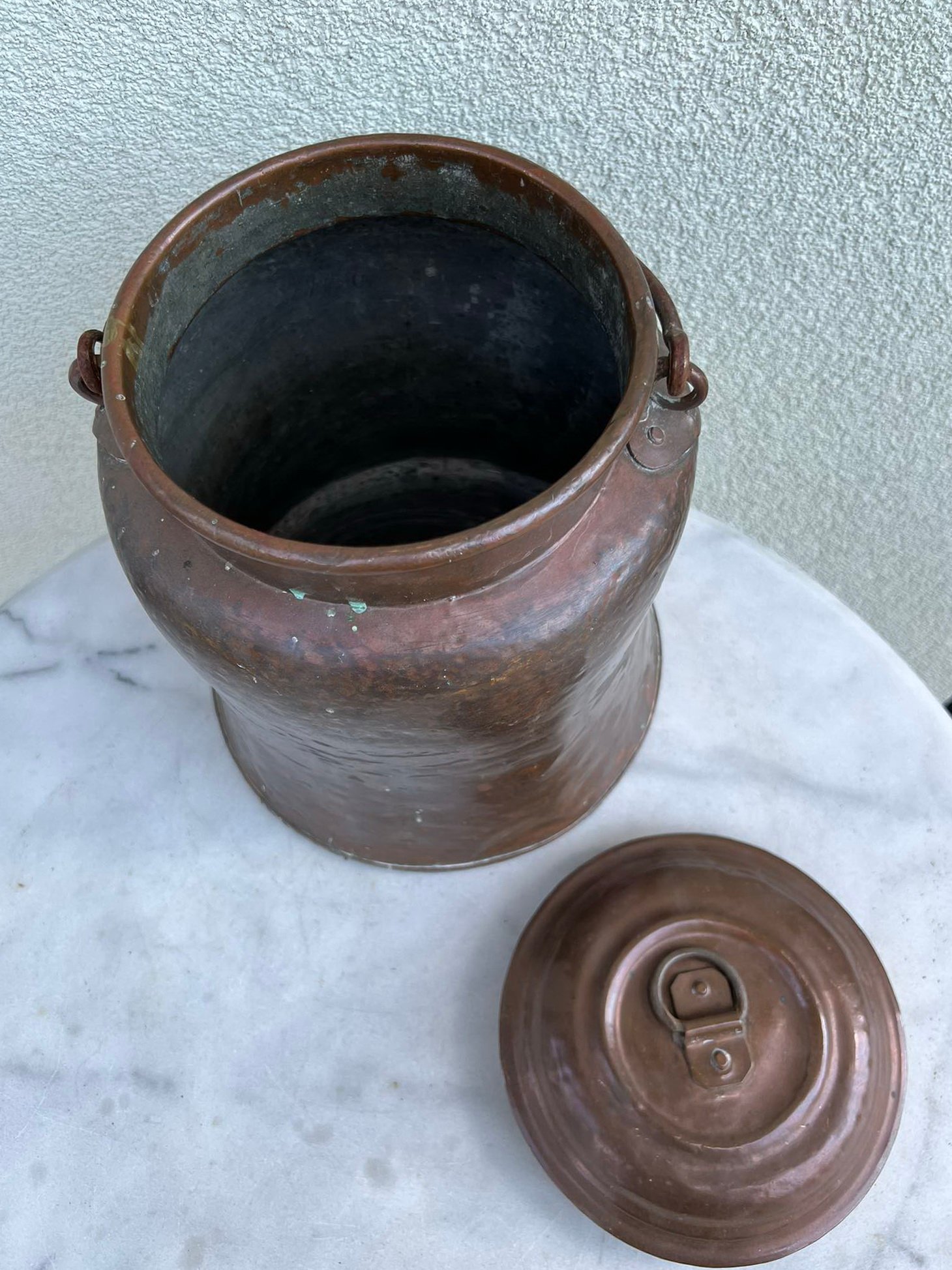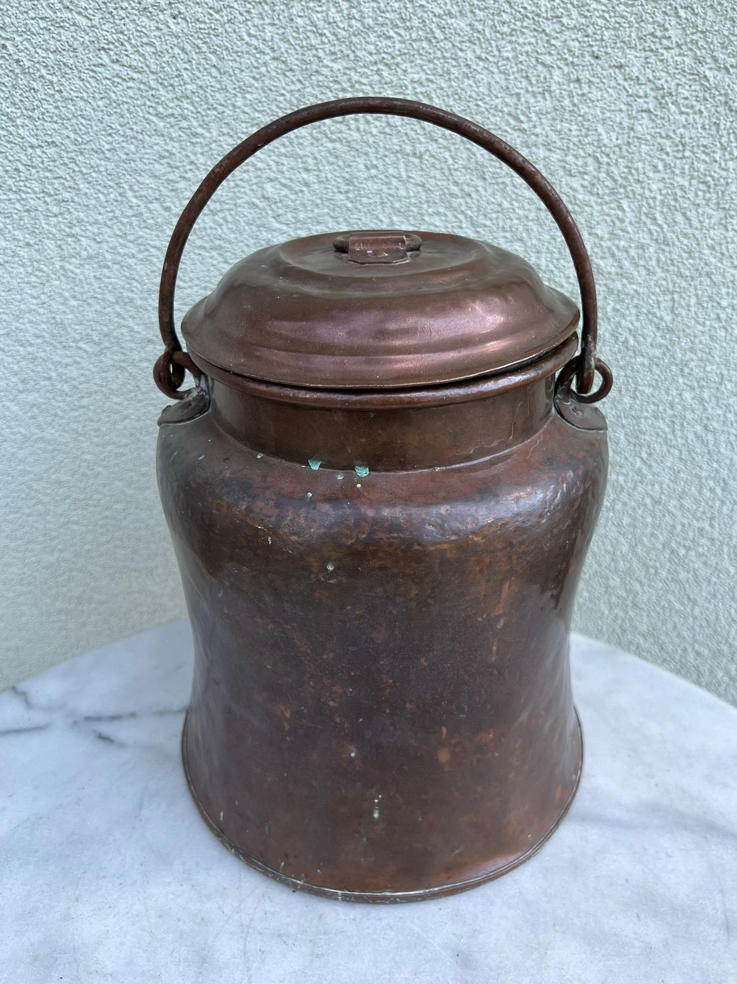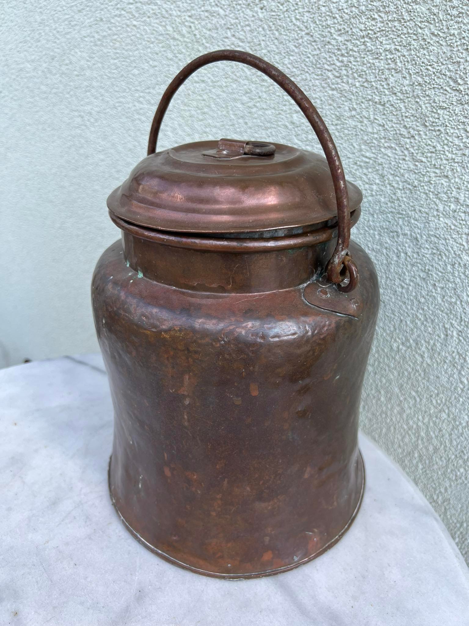 Puodas, kibiras su dangčiu ir rankena, varinis, kaltinis, antikvarinis. Kaina 53