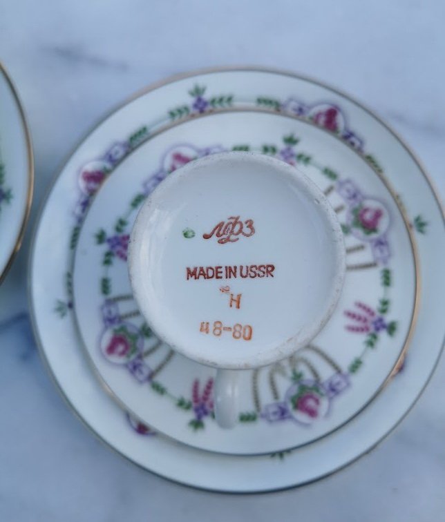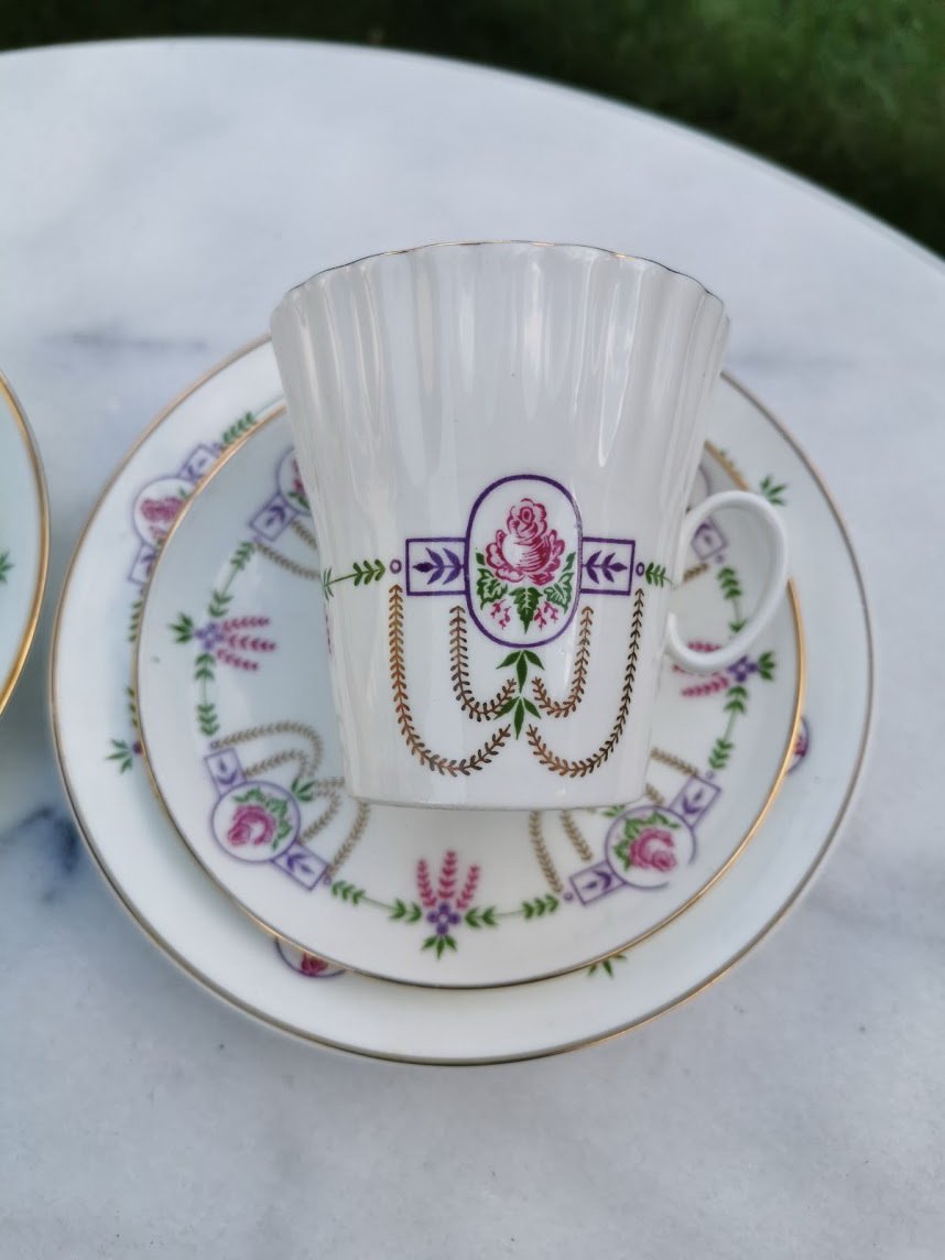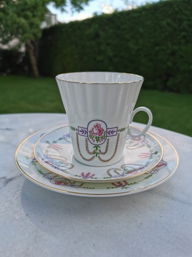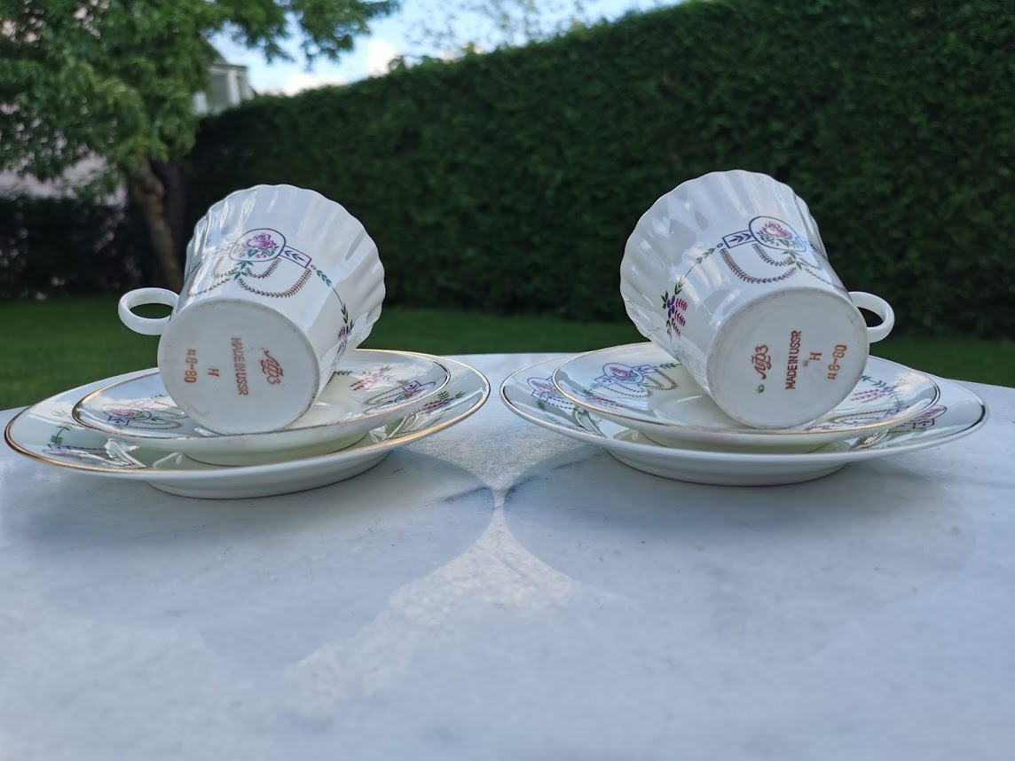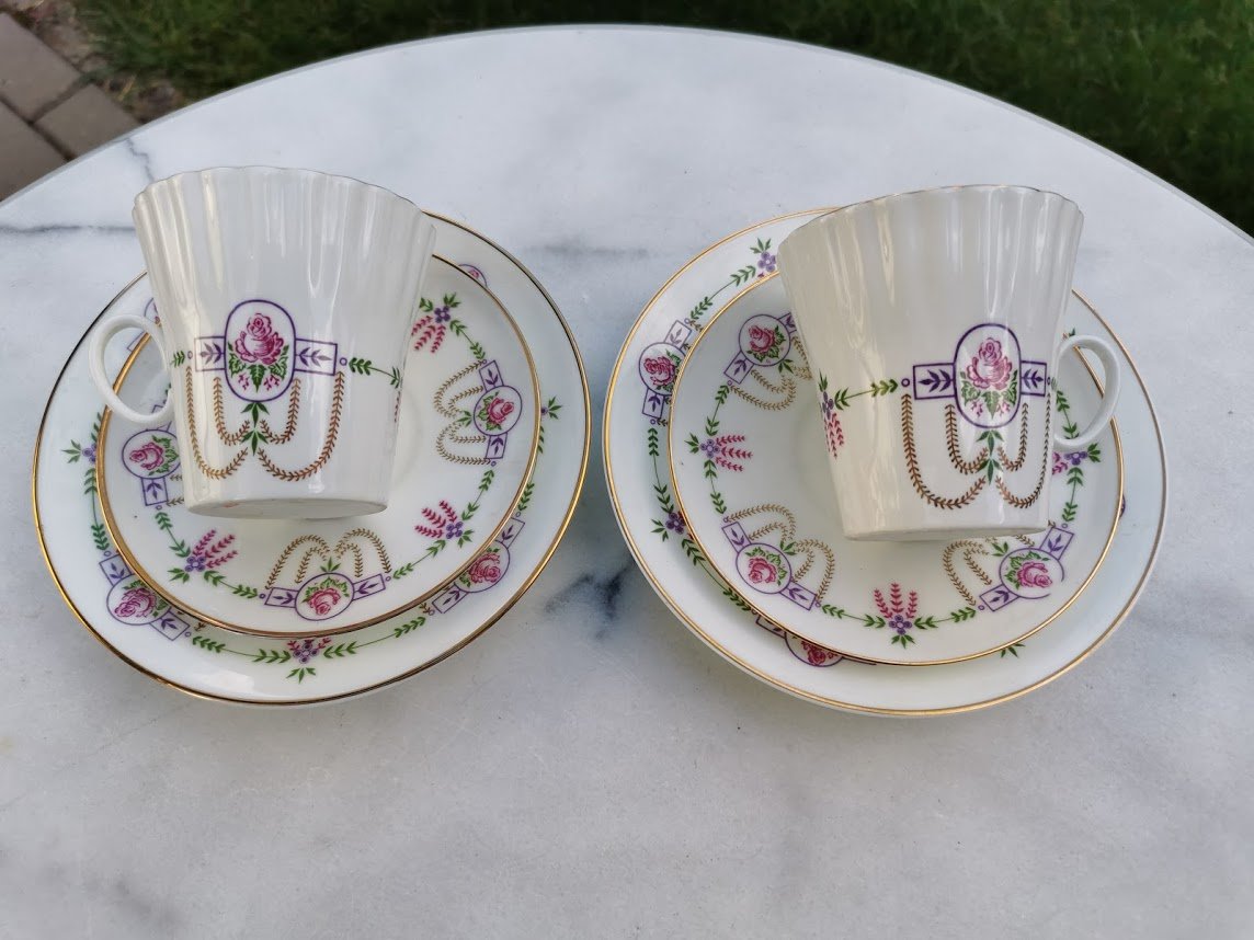 Puodeliai LFZ su pora lėkštučių. Porcelianas. 2 vnt. Puodelio talpa 200 ml. Kaina po 28
