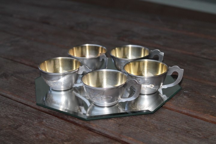 Puodeliai, puodelis sidabrinis, 875 prabos. LIKO 3 vnt. Vieno puodelio svoris apie 42 gr. Puodelio talpa 50 ml. Kaina po 88