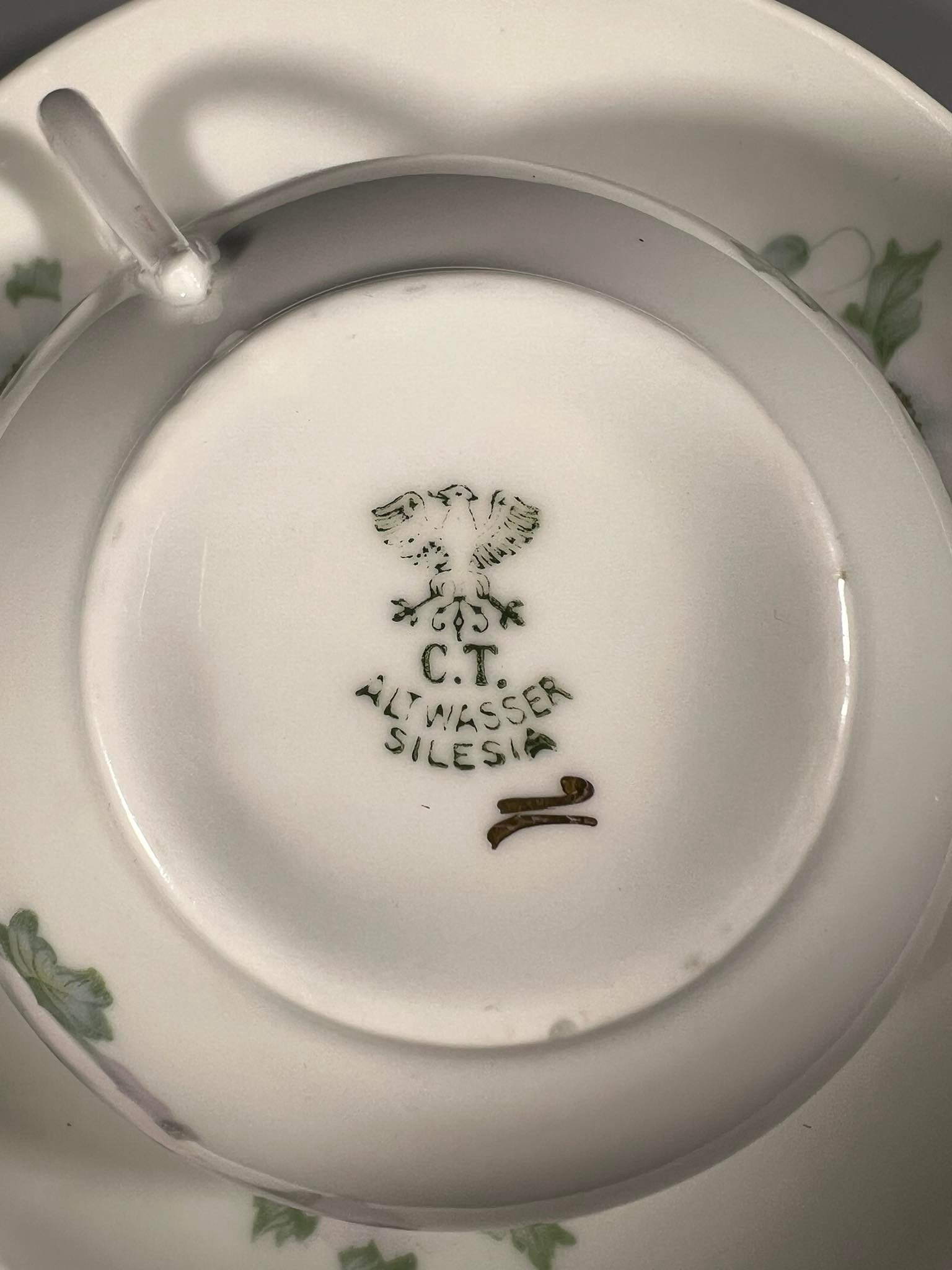 Puodeliai su lėkštutėmis porcelianiniai, antikvariniai. C.T. Altwasser Silesia. 1925 m. Talpa 200 ml. 6 vnt. Kaina po 8