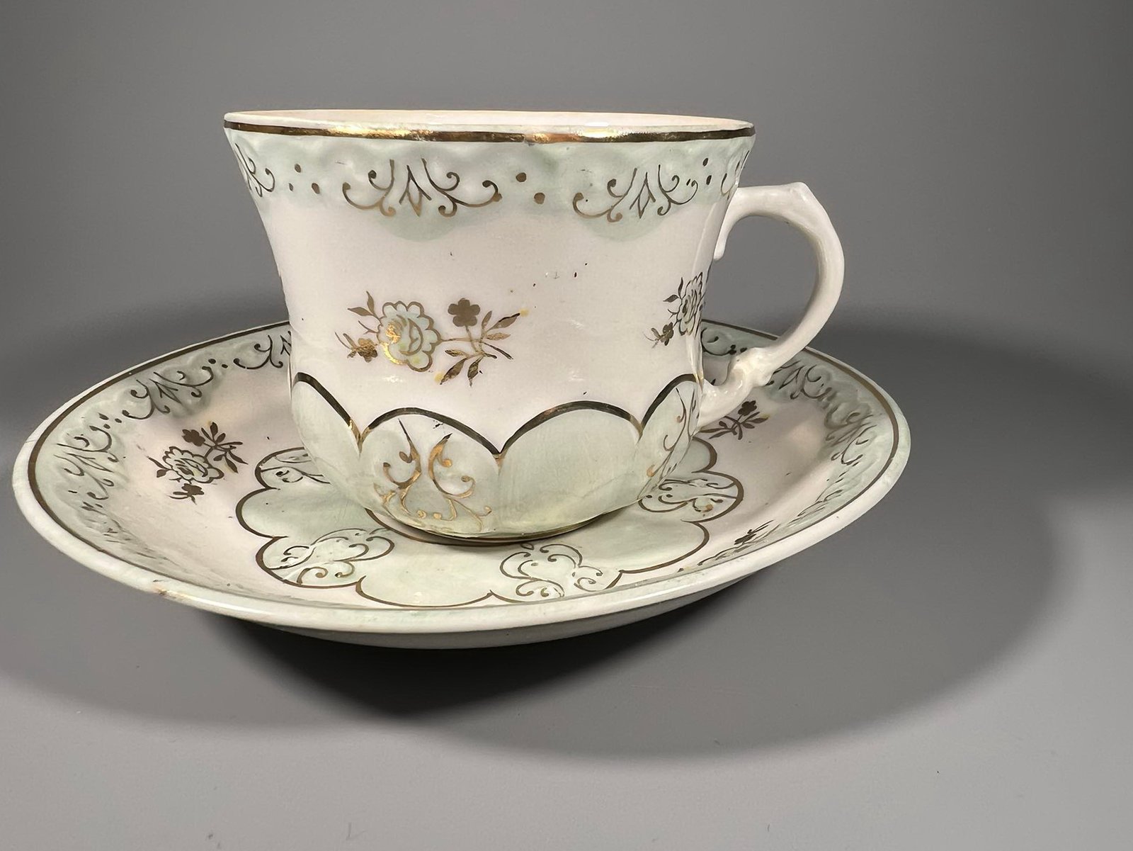 Puodeliai su lėkštutėmis porcelianiniai, tarybinių laikų. Fabrkas Dulevo, 1952-1962 m. Talpa 170 ml. 3 vnt. Kaina po 18