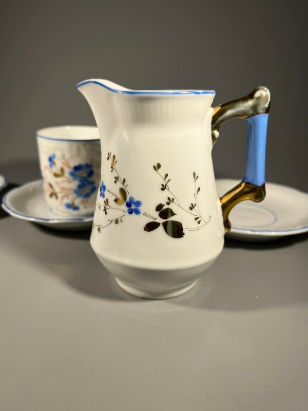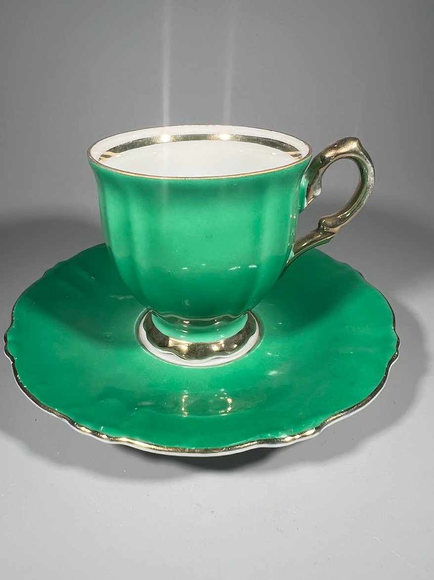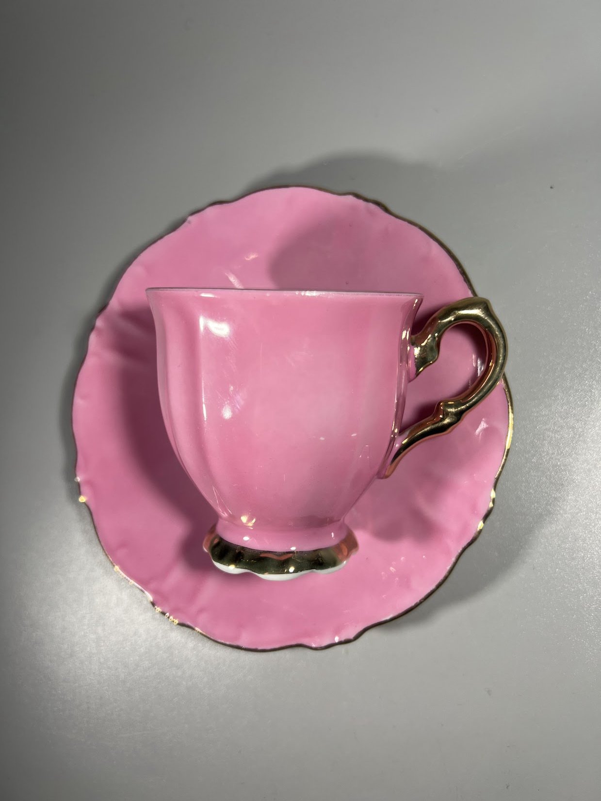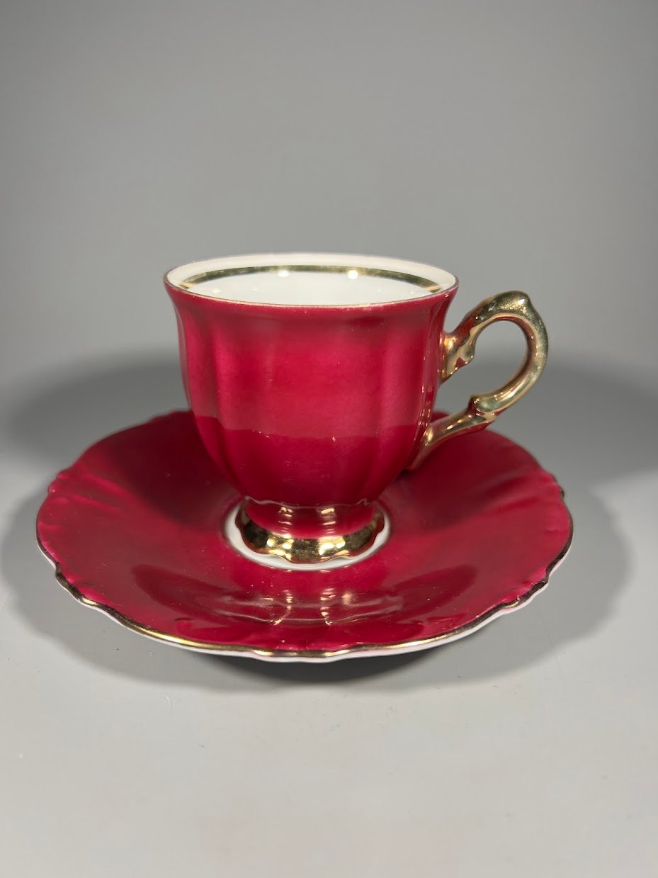 Puodeliai su lėkštutėmis porcelianiniai: žalias (2 vnt.), raudonas (2 vnt.), rožinis (2 vnt.), mėlynas 1 vnt. su 2 lėkštutėm. Talpa po 130 ml. Kaina po 8
