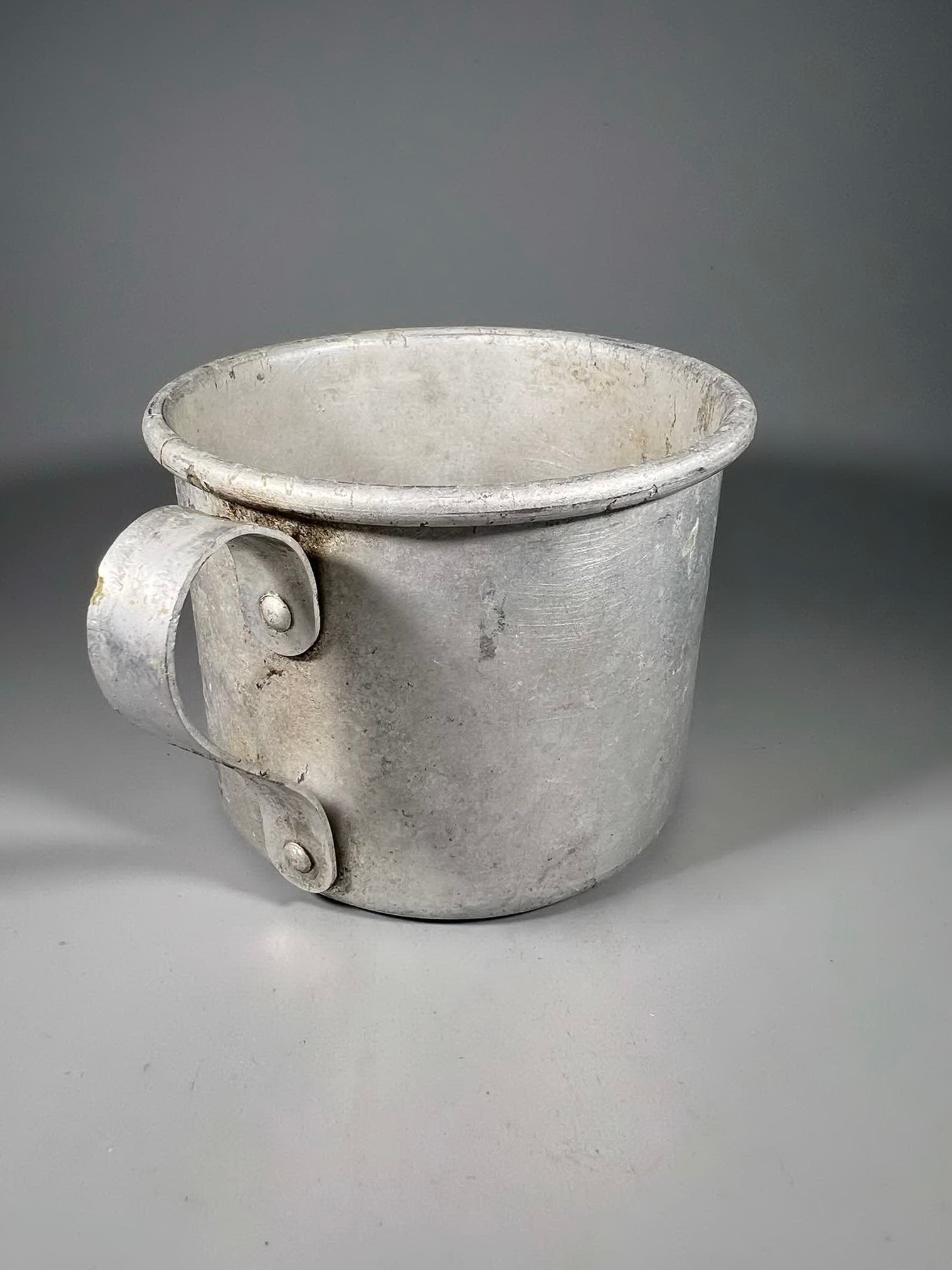 Puodelis aliuminis sovietinis, tarybinių laikų. Talpa 0,5 l. 5 vnt. Aukštis 8, skersmuo 10 cm. Kaina po 16