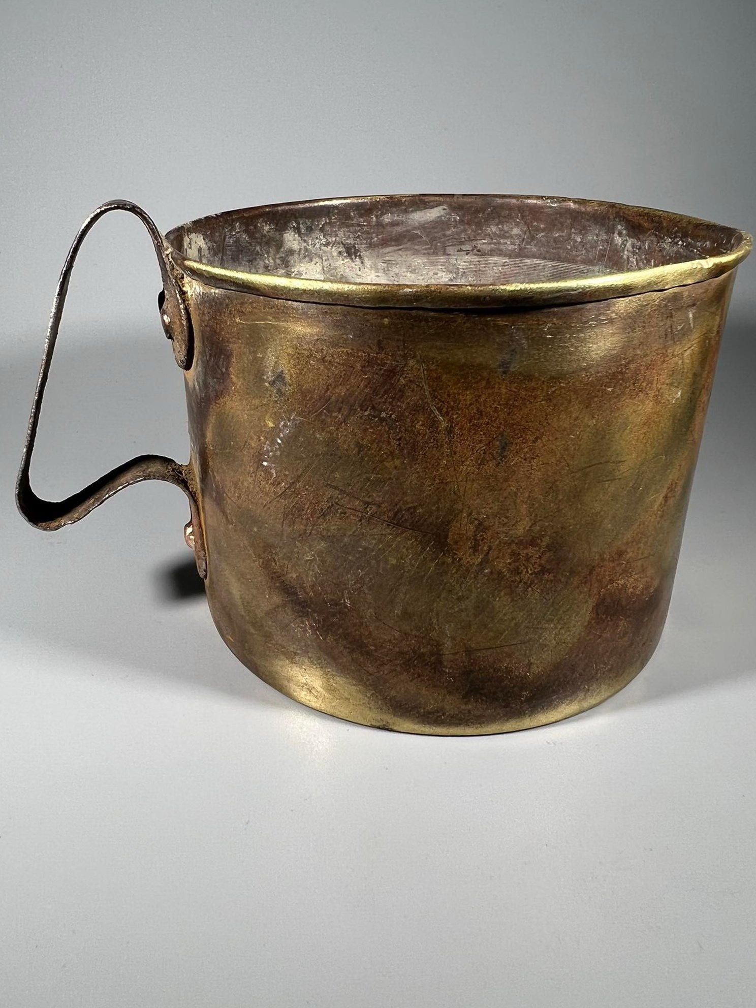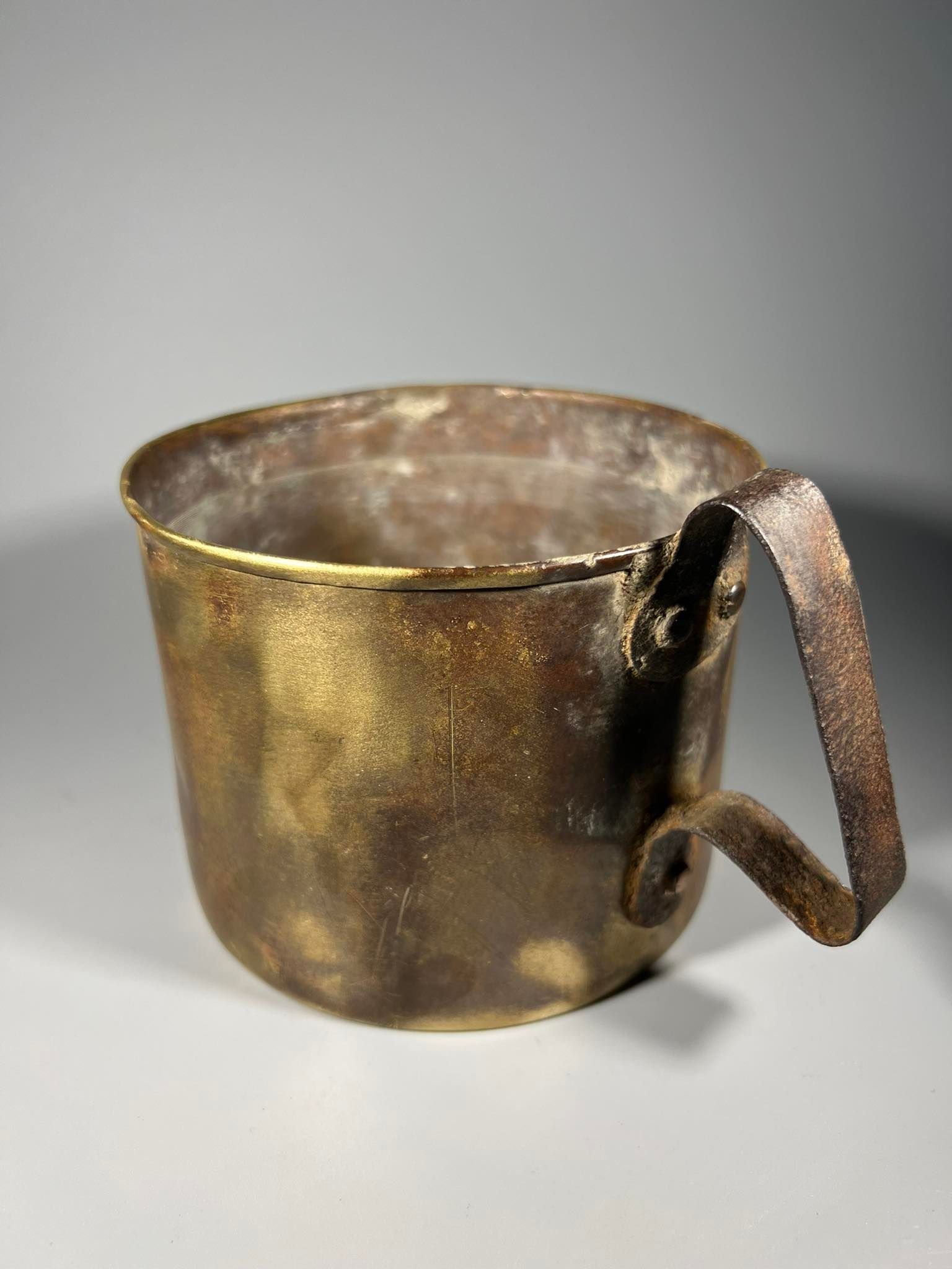 Puodelis antikvarinis pagamintas iš gilzės (tūtos), originalus, rankų darbo, apkasų menas. Trench art. Svoris 1 kg. Aukštis 9, skersmuo 12 cm. Kaina 53