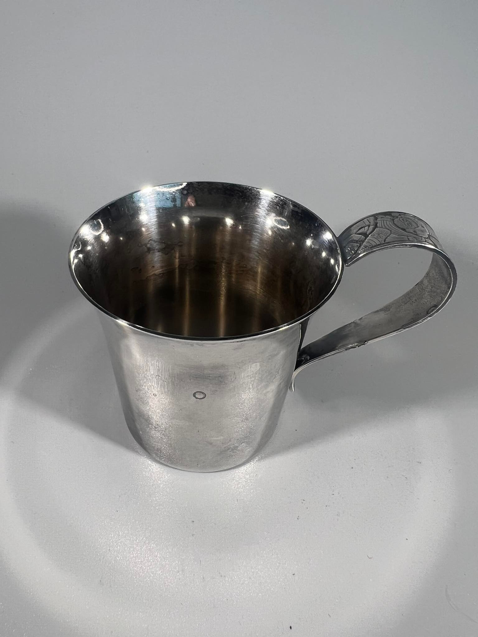 Puodelis sidabruotas N.S. ALP. G.A.B. Sweden E.P.N.S. Talpa 150 ml. Kaina 13