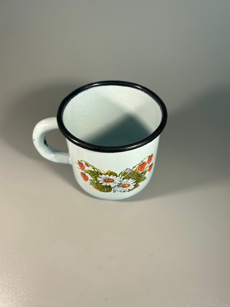 Puodelis skardinis, emaliuotas, sovietinis, tarybinių laikų. 4 vnt. Talpa 280 ml. Aukštis 7, skersmuo 7,5 cm. Kaina po 6