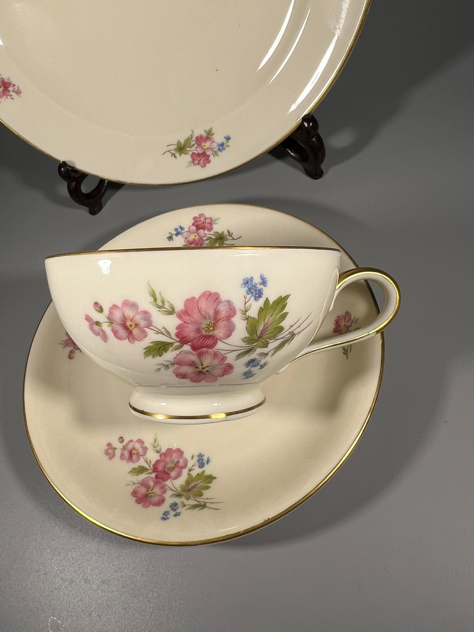 Puodelis su dviem lėkštutėm porcelianiniai, antikvariniai ROSENTHAL. Ph. Rosenthal & Co Werk Kronach-Germany Else. 1901-1933 m. 4 vnt. Puodelio talpa 200 ml. Didesnės lėkštutės skersmuo 20 cm. Kaina po 23