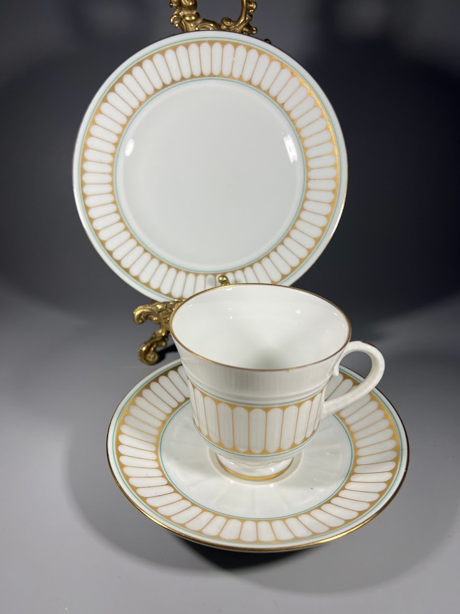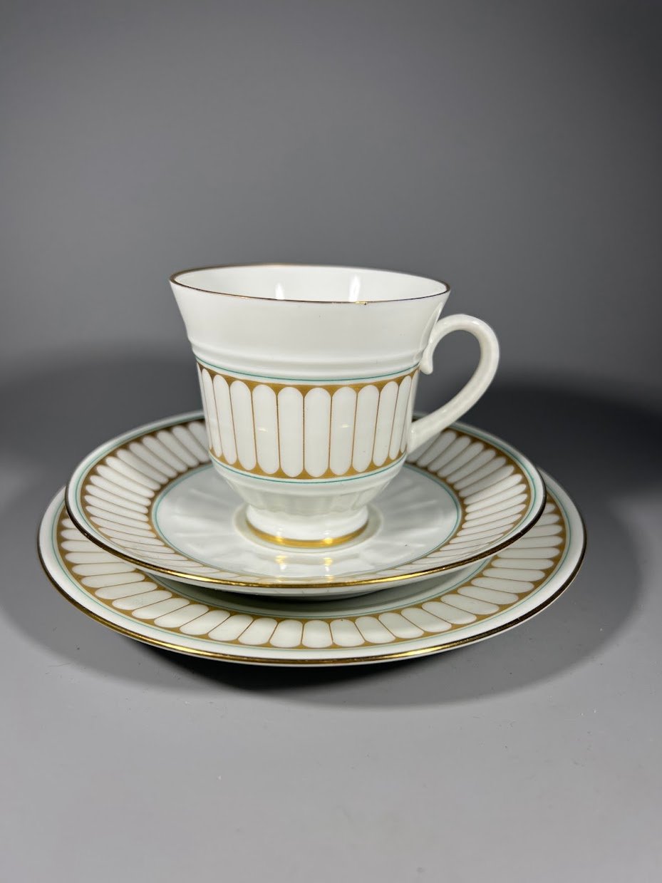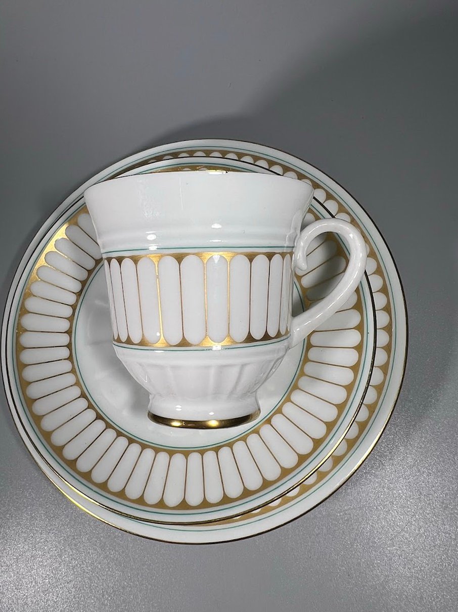 Puodelis su dviem lėkštutėm porcelianinis, trio rinkinys, Bing & Grøndahl, Hartmann dizaino. Puodelio talpa 150 ml. Kaina 28 už viską.
