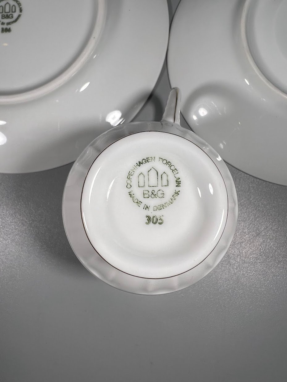 Puodelis su dviem lėkštutėm porcelianinis, trio rinkinys, Bing & Grøndahl, Hartmann dizaino. Kaina 28 už viską.